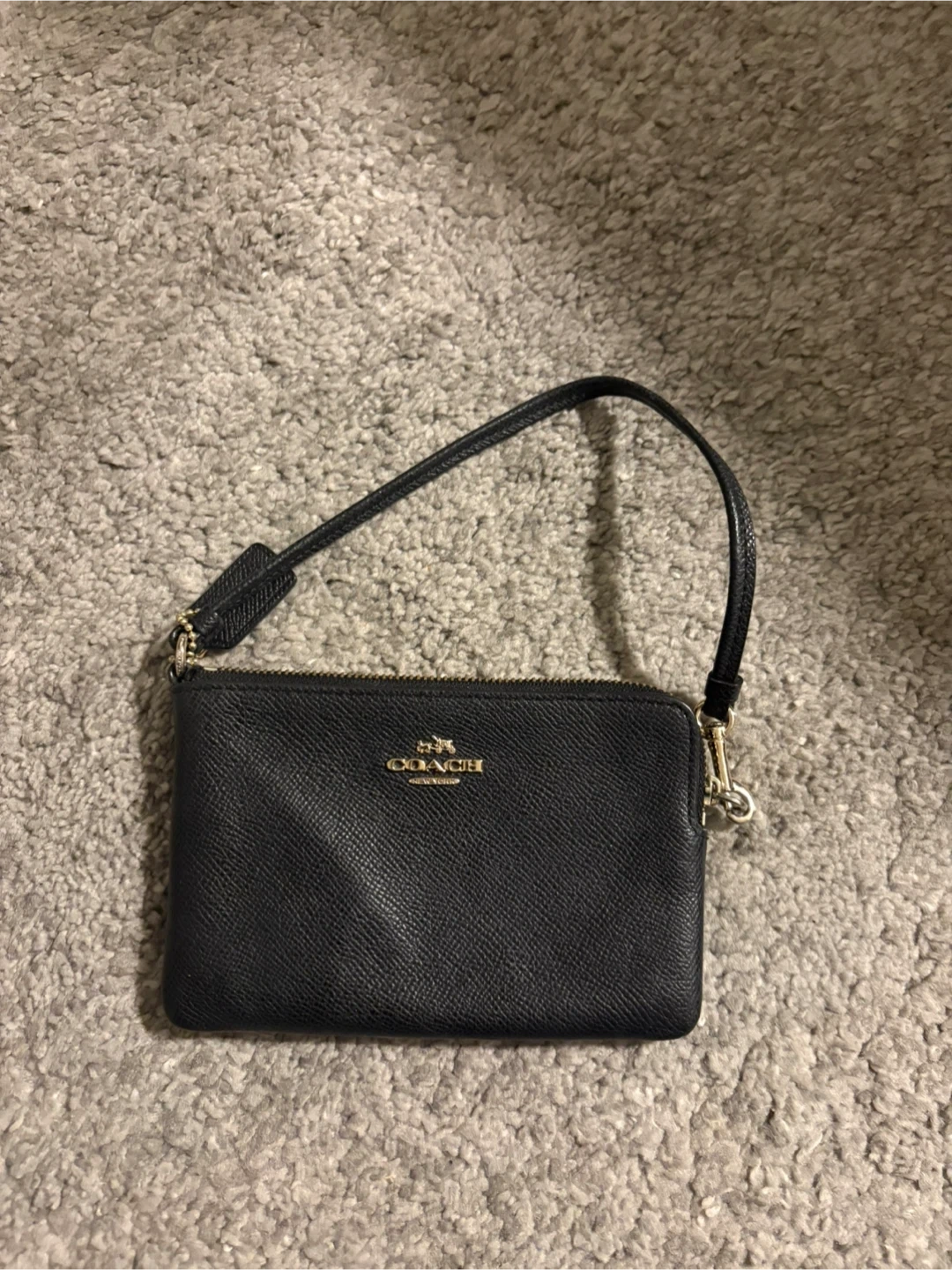 I'm selling a Coach wristlet in black with gold hardware. It's in great condition and perfect for carrying your essentials when you don't want to bring a big bag. It's a stylish and practical accessory! Pick up only near major Mackenzie and 404