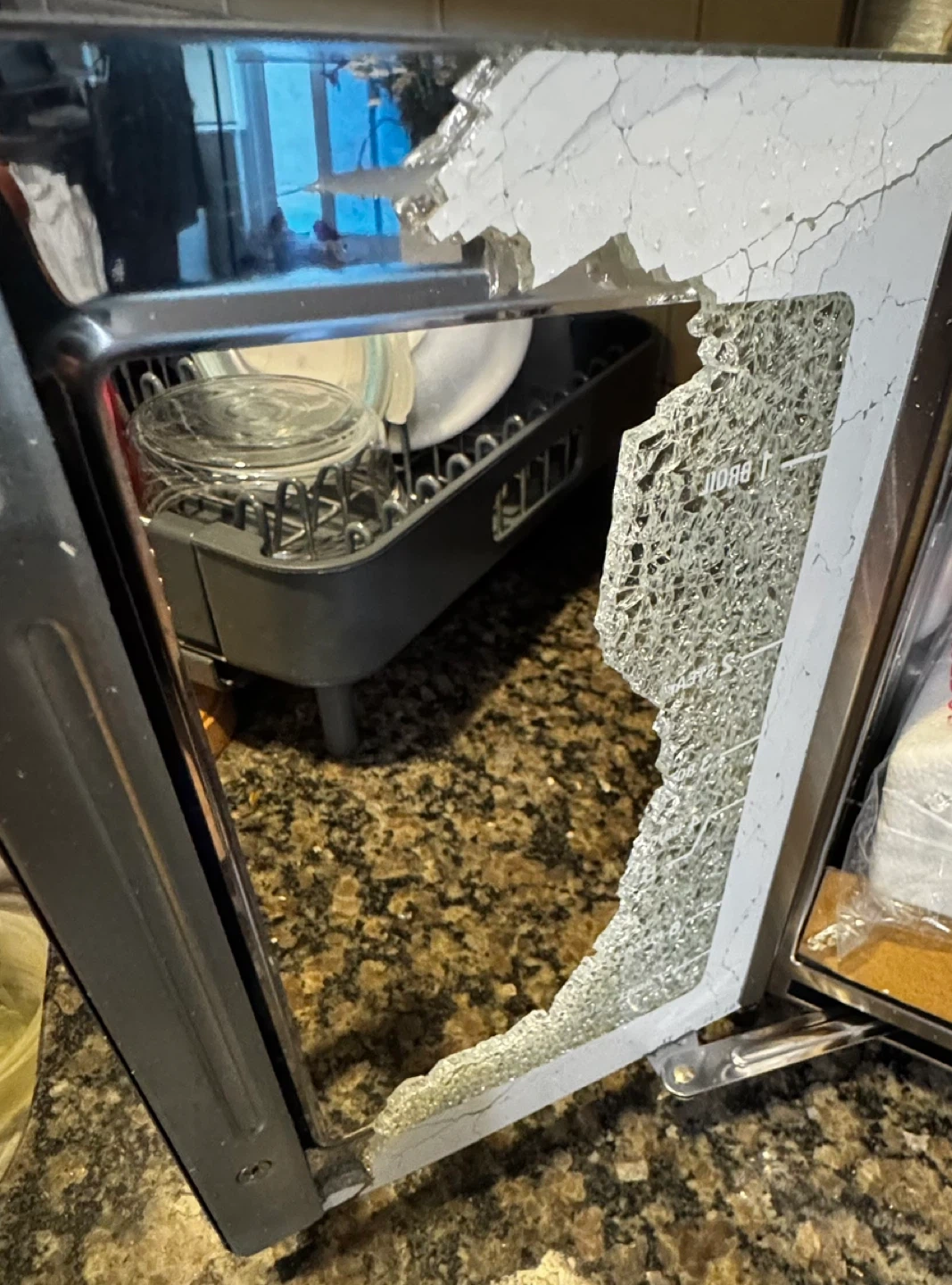 I’m selling it as-is, so please note that the glass door needs to be replaced. The glass door can be replaced by an appliance repair shop or a glass shop, or if you prefer to use this for replacement parts or some other DIY project. The unit itself operates perfectly fine, it just needs a new glass door.