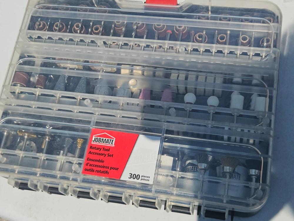 Selling a Jobmate Rotary Tool Accessory Set. This set comes with 300 pieces, perfect for all sorts of projects and tasks. It includes a variety of accessories for your rotary tool needs. Get it now and enhance your tool collection!