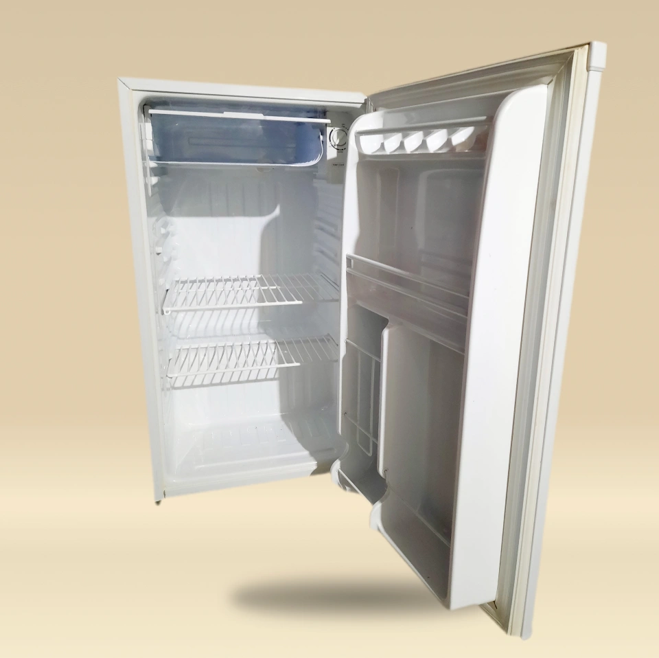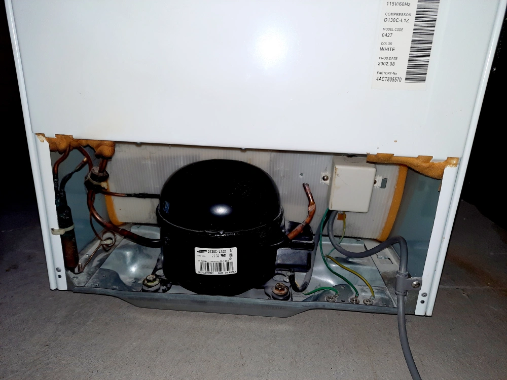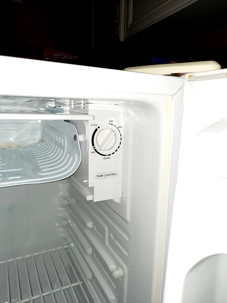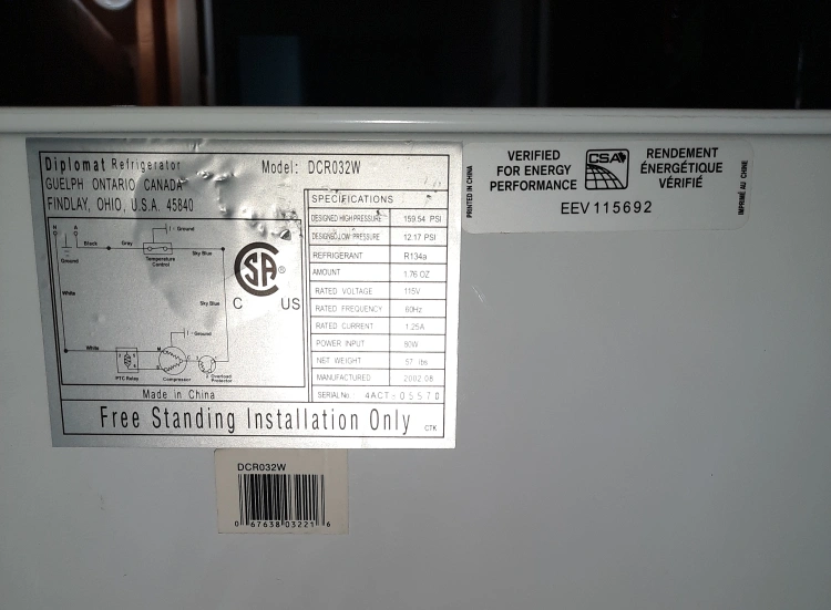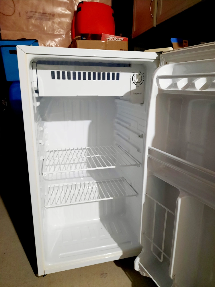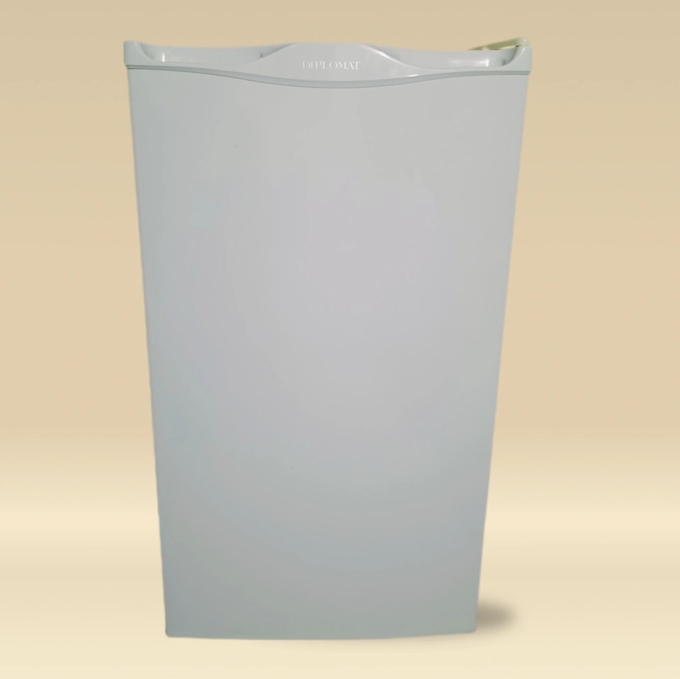 Selling a compact Diplomat fridge in white. It's perfect for small spaces like apartments, dorm rooms, or offices. It features: - Adjustable temperature control - Interior shelving - Compact size - Freezer It was manufactured in 2002 August 08. 32" x 19" x 18"