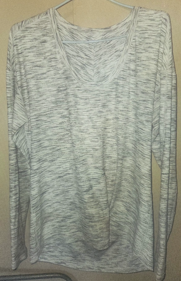 A comfy long sleeve top with a V-neck design. The fabric has a heathered look, giving it a nice texture. Perfect for layering or wearing on its own! Pickup Only.