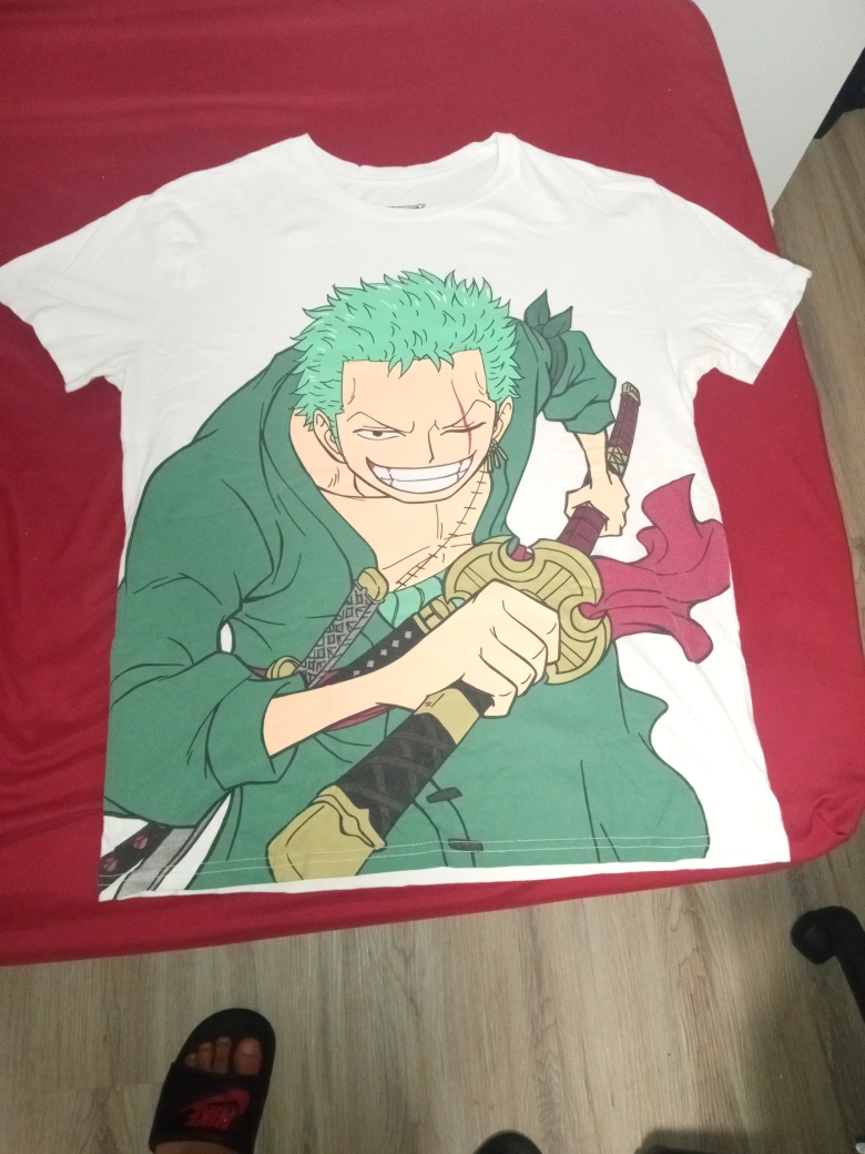 Selling a white One Piece t-shirt featuring Zoro. The size is CH. Great for any One Piece fan! (Pd:The shirt is new and never used)