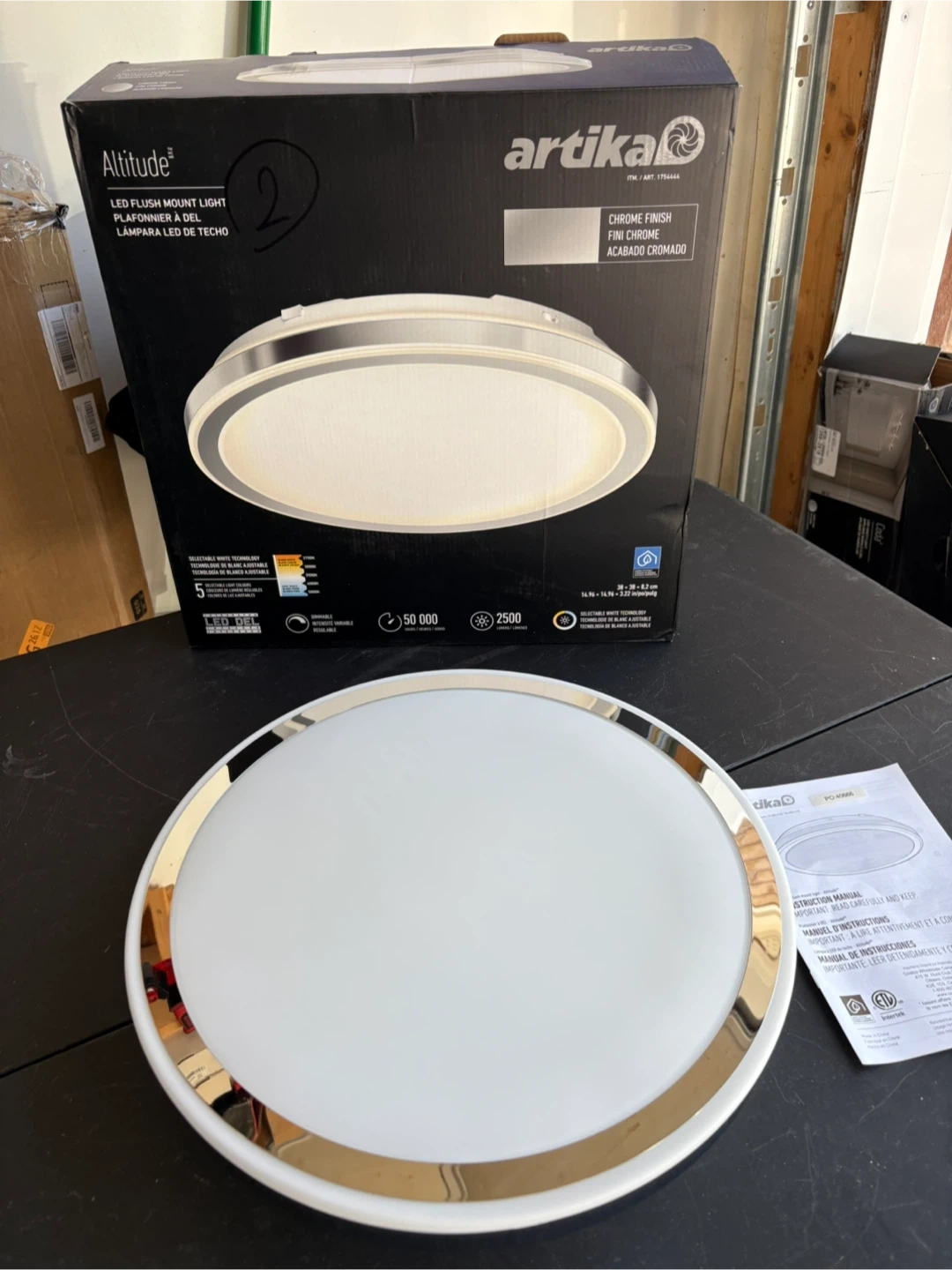 Brand new Artika Altitude LED flush mount light (chrome finish). Box and manual included. ⚠️ Screws/mounting hardware not included. 💲 Final price, no negotiation.