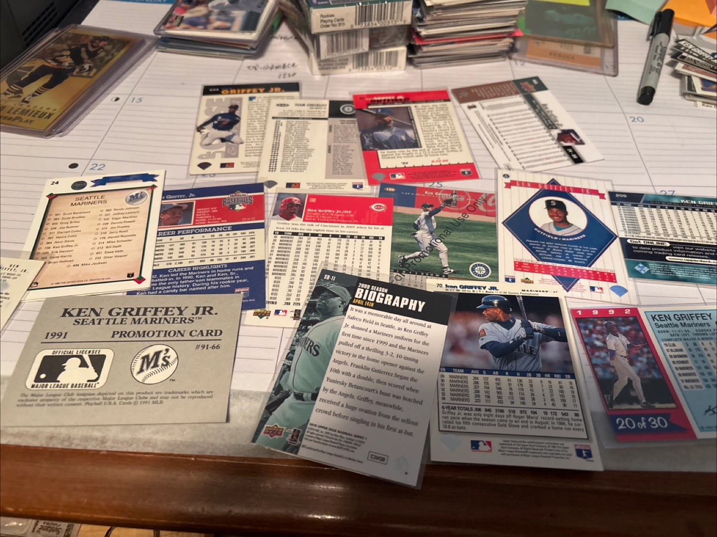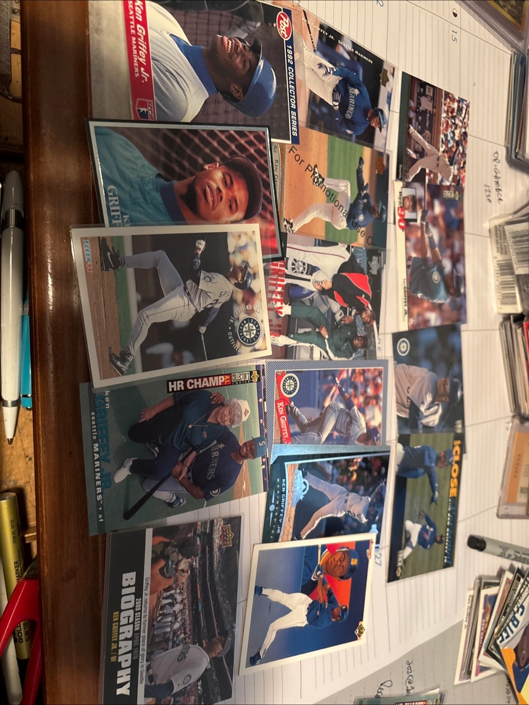 Selling a collection of Ken Griffey Jr. baseball cards featuring the Seattle Mariners! These cards showcase various moments and highlights from his career. Great for any baseball fan or collector looking to add to their collection