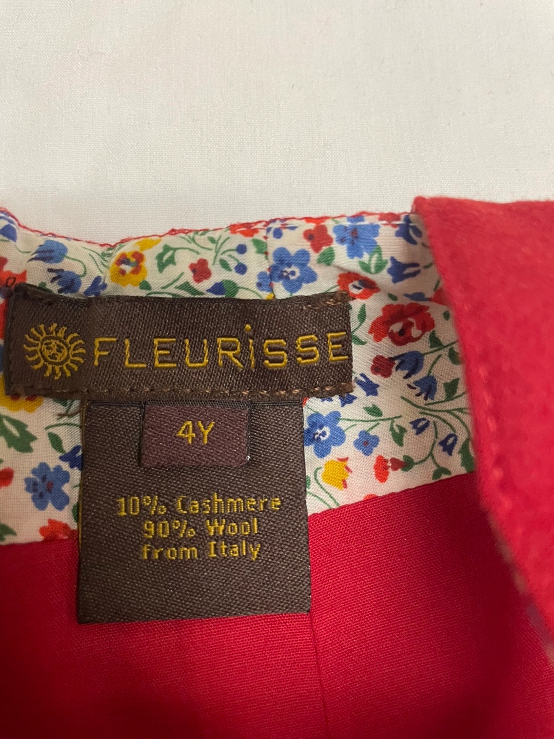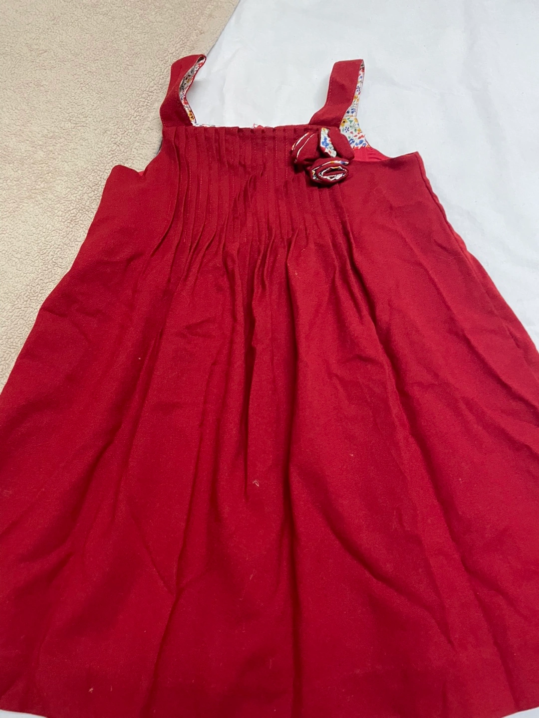 This is a beautiful Fleurisse dress for a little one! It's a vibrant red colour and made from a lovely blend of 90% wool and 10% cashmere. The size is 4Y. It has a cute floral lining and a decorative flower detail. FLEURISSE of Italy GIRL’s cashmere and wool dress. Size 4Y. Red with cloth roses on front. BEAUTIFUL ITEM. Wear with turtle neck top and leggings. Cute. Bought in New York. Pick up in Scarborough. Midland and Eglinton