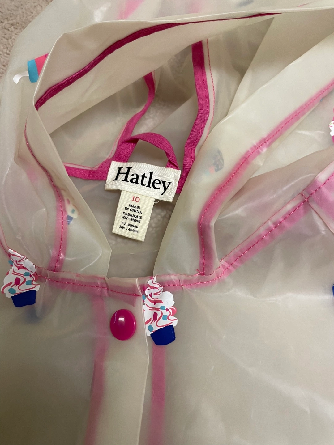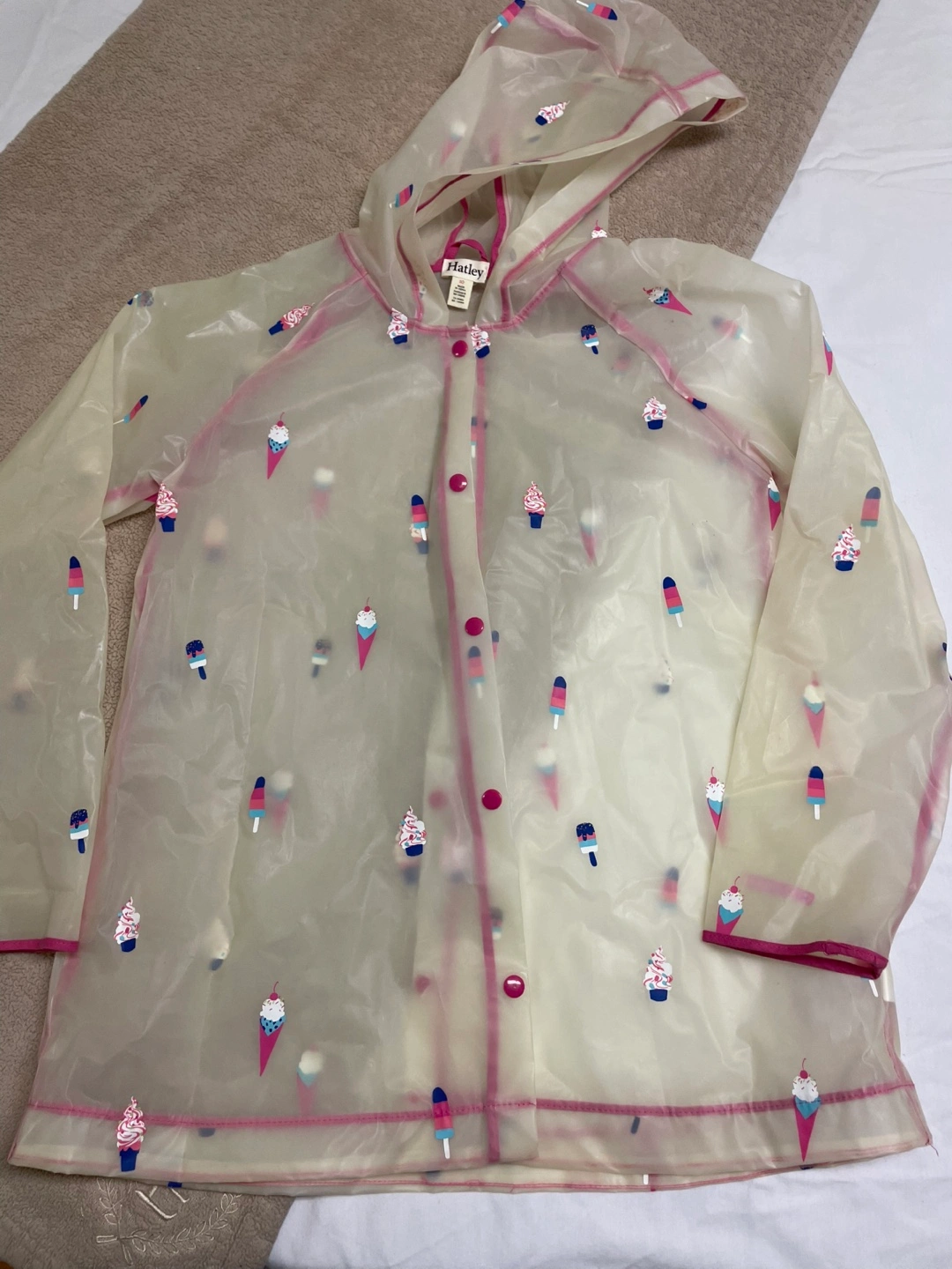Keep your little one dry and stylish with this adorable Hatley raincoat! It's a size 10 and features a fun ice cream and popsicle print. Perfect for those rainy days. Pick up in Scarborough . Midland and Eglinton