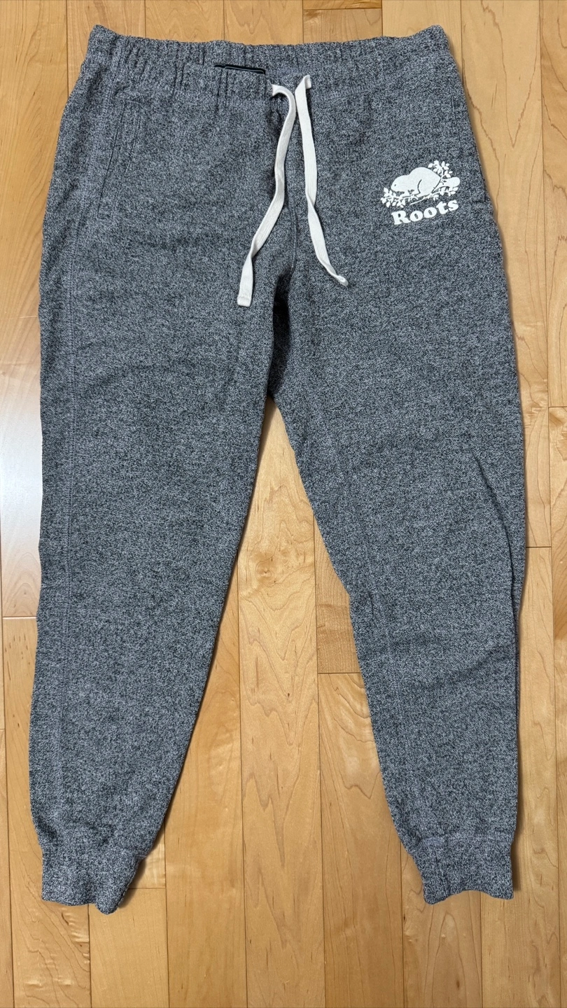 Women Roots sweatpants in a salt and pepper colour. They are a size small and in good condition!