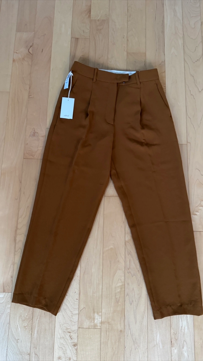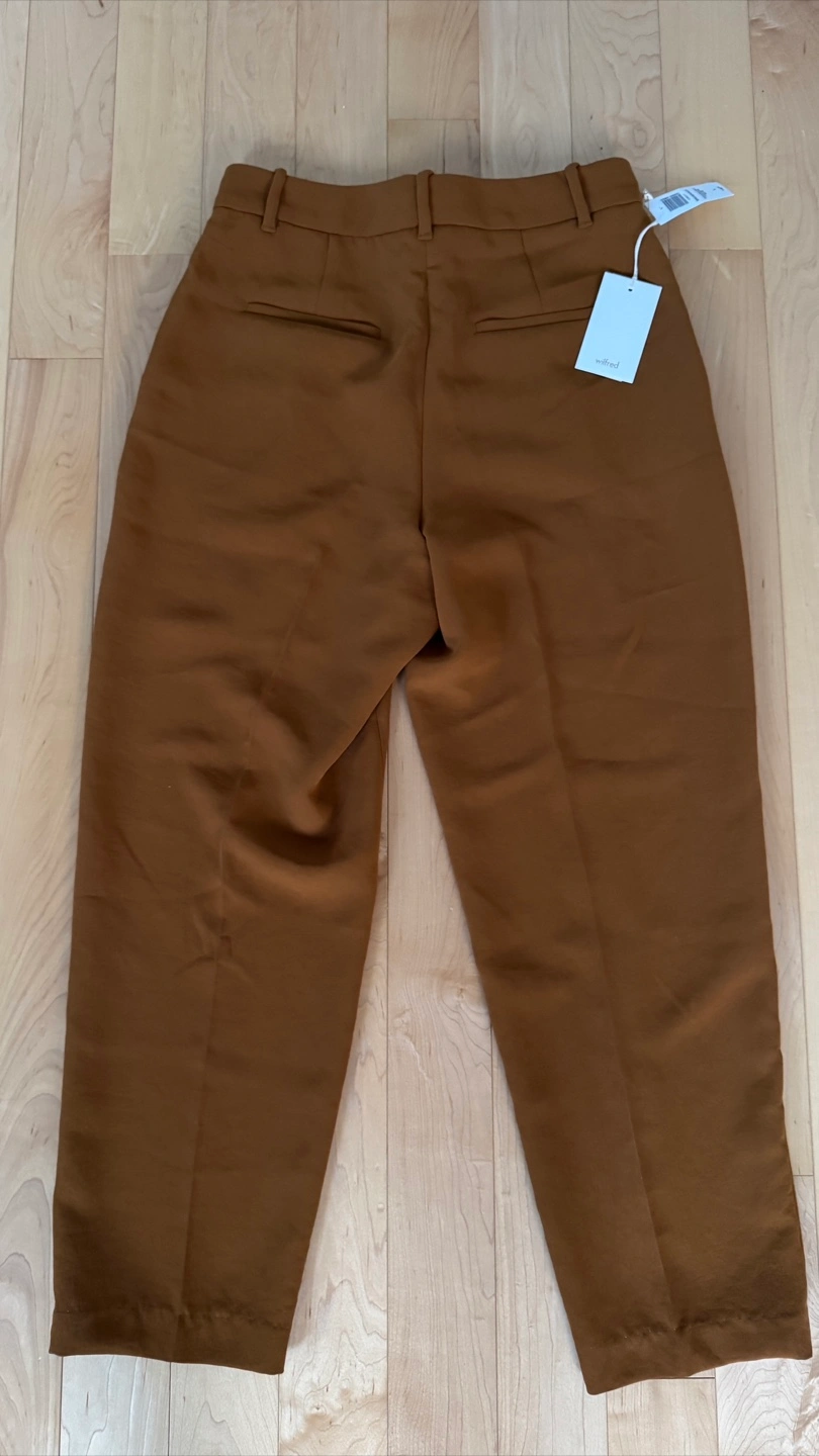 These are a pair of Wilfred Broadcast pants in size 8. The colour is a lovely rich chestnut brown. They are brand new with tags still attached! They retail for $148