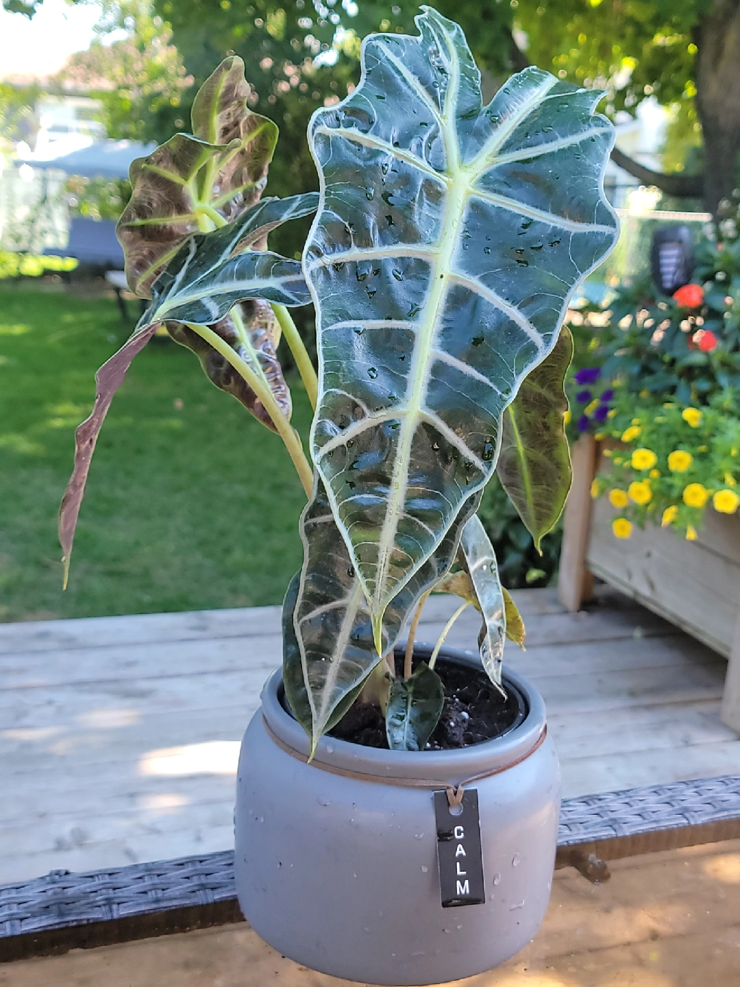 Selling a beautiful Alocasia Polly plant, also known as an African Mask plant! It comes in a stylish grey pot that complements its unique foliage. This plant is perfect for adding a touch of greenery to your home or office. It's in great condition and ready to thrive in its new home