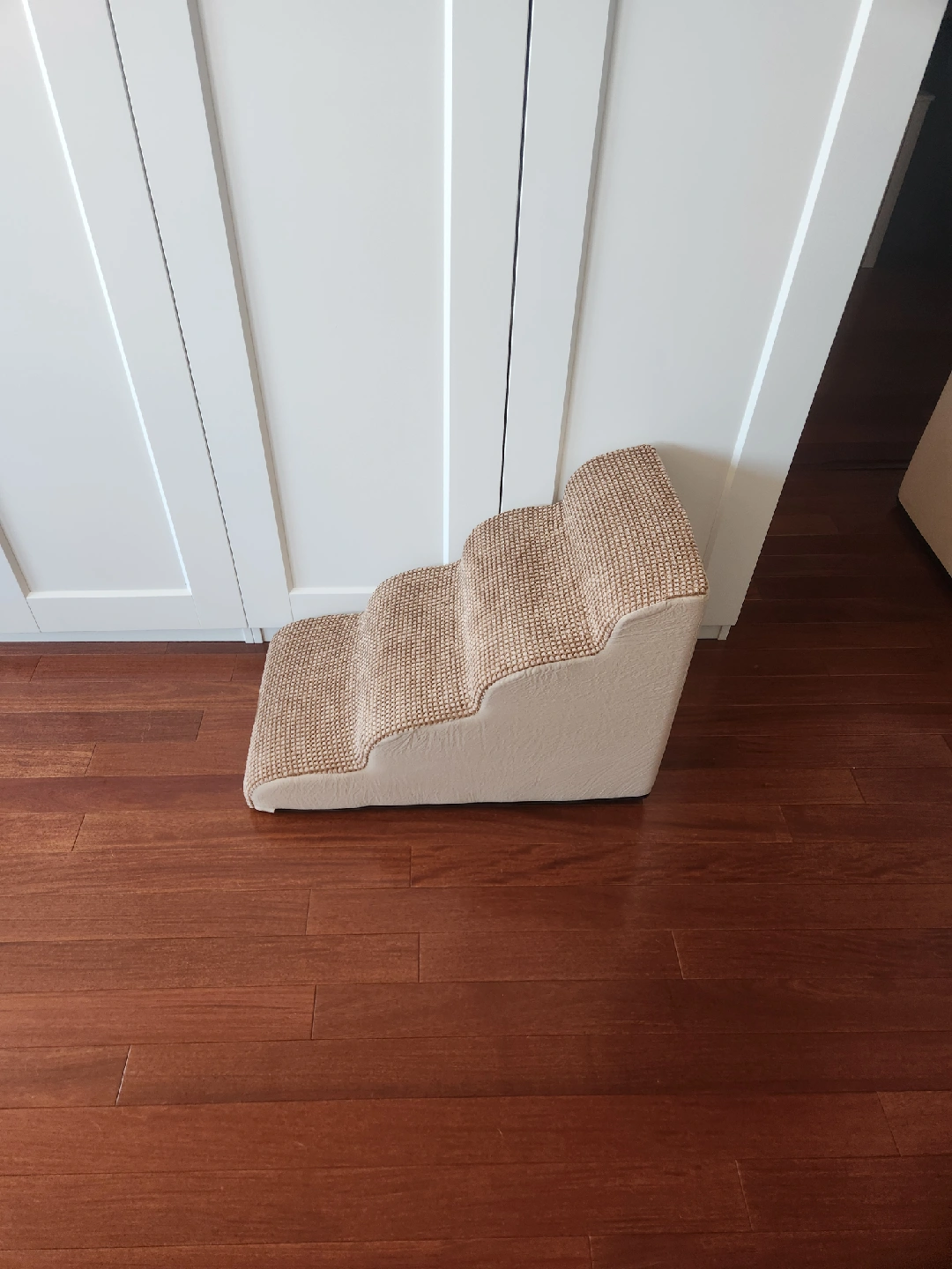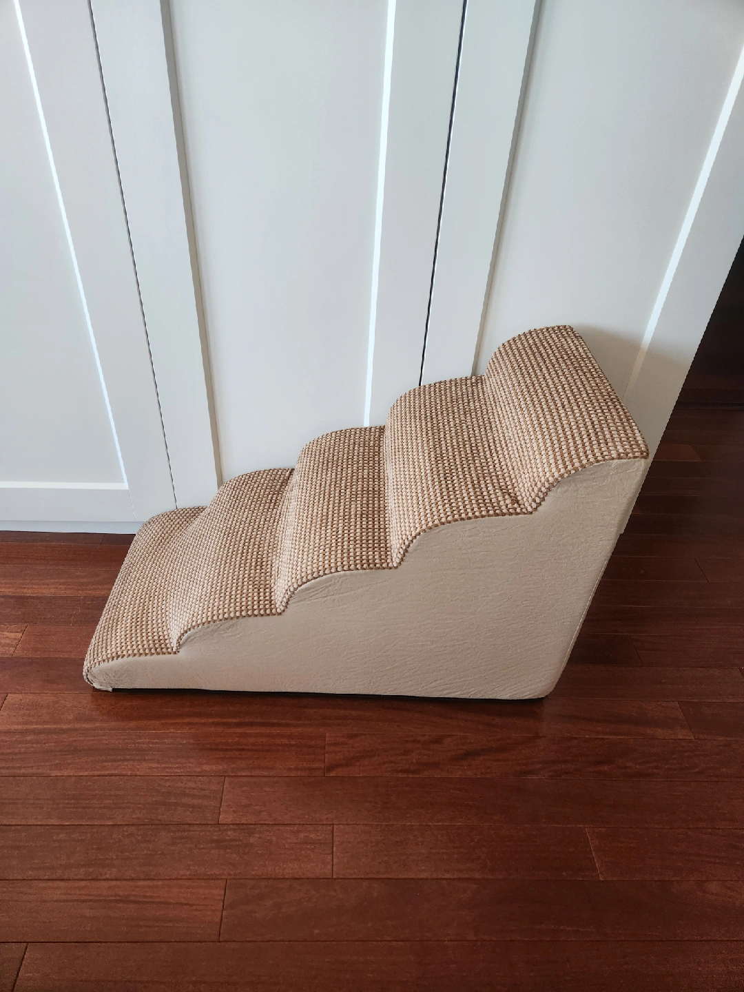 Here are some Brand new COZY KISS dog stairs! They're perfect for helping your furry friend reach high places like beds and sofas. it's Amazon's top 1! I have onr 4 stairs and one 5 stairs *PLESE SEE THE HEIGHT ON THE PICTURE*