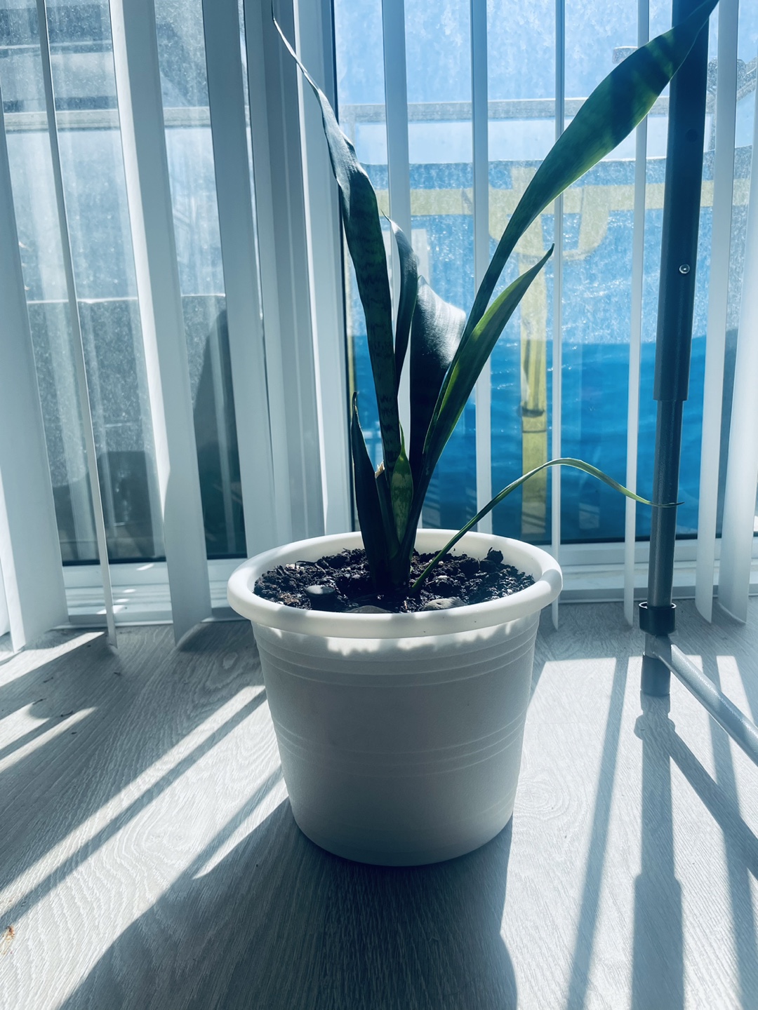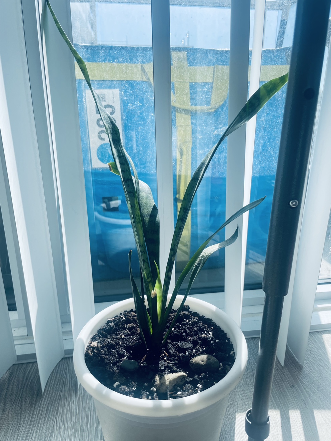 Selling a healthy snake plant potted in a simple white pot. This plant is super easy to care for and great for purifying the air. It's perfect for adding a touch of greenery to any room!