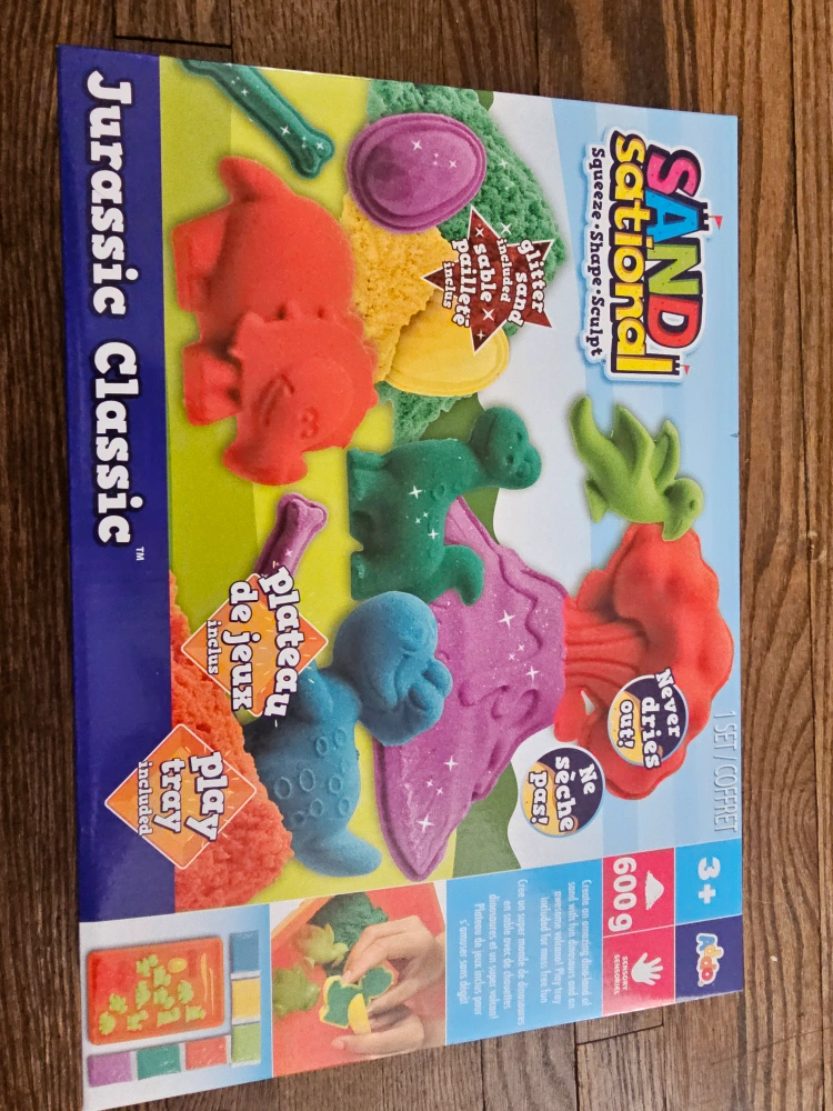 Get ready for some dino-sized fun with this SANDSational Jurassic Classic set from Addo Play! It's perfect for kids aged 3+ and includes everything you need to squeeze, shape, and sculpt your own prehistoric world. Comes with a play tray and glitter sand to make your creations extra special