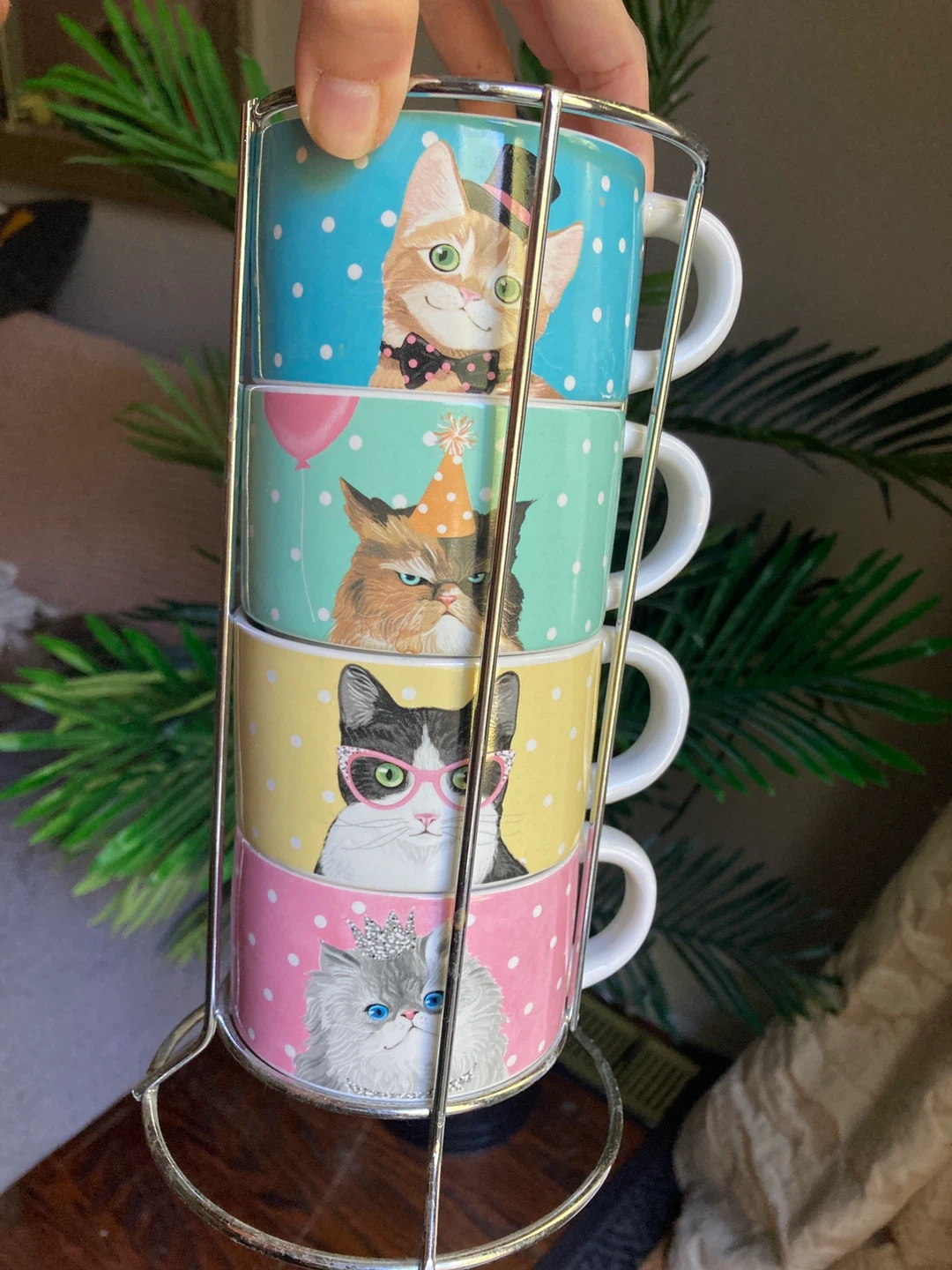 Perfect for cat lovers! Super cute set of cat mugs with stand from Pier One (no longer in business) No flaws, never used.