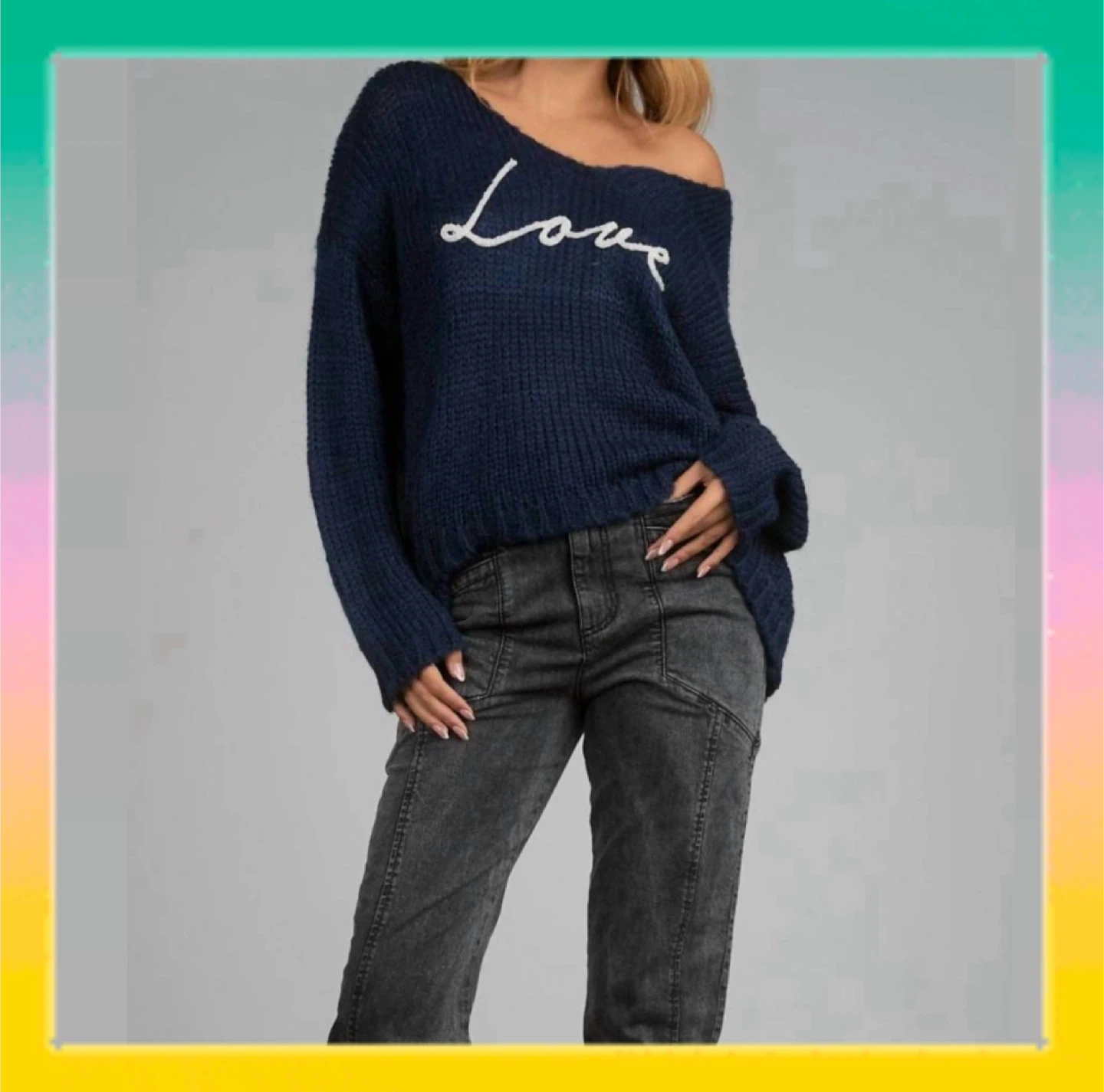 Elan Navy Blue Love Knit Sweater - Sz M