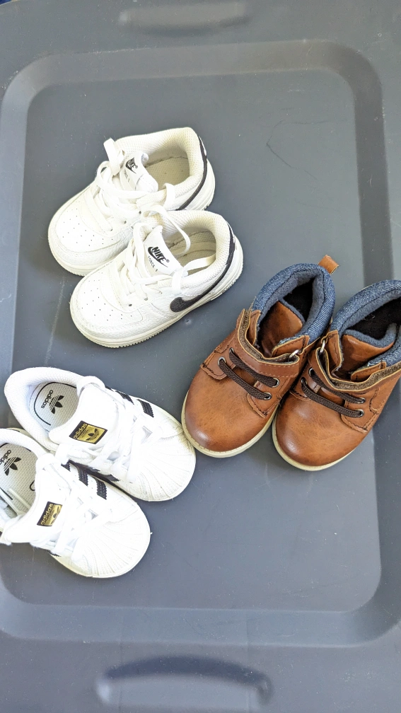 81Selling a three pair of baby shoes. Brown leather boot Nike and Adidas They are brand new condition Perfect for your little one! ( All Size 5 )