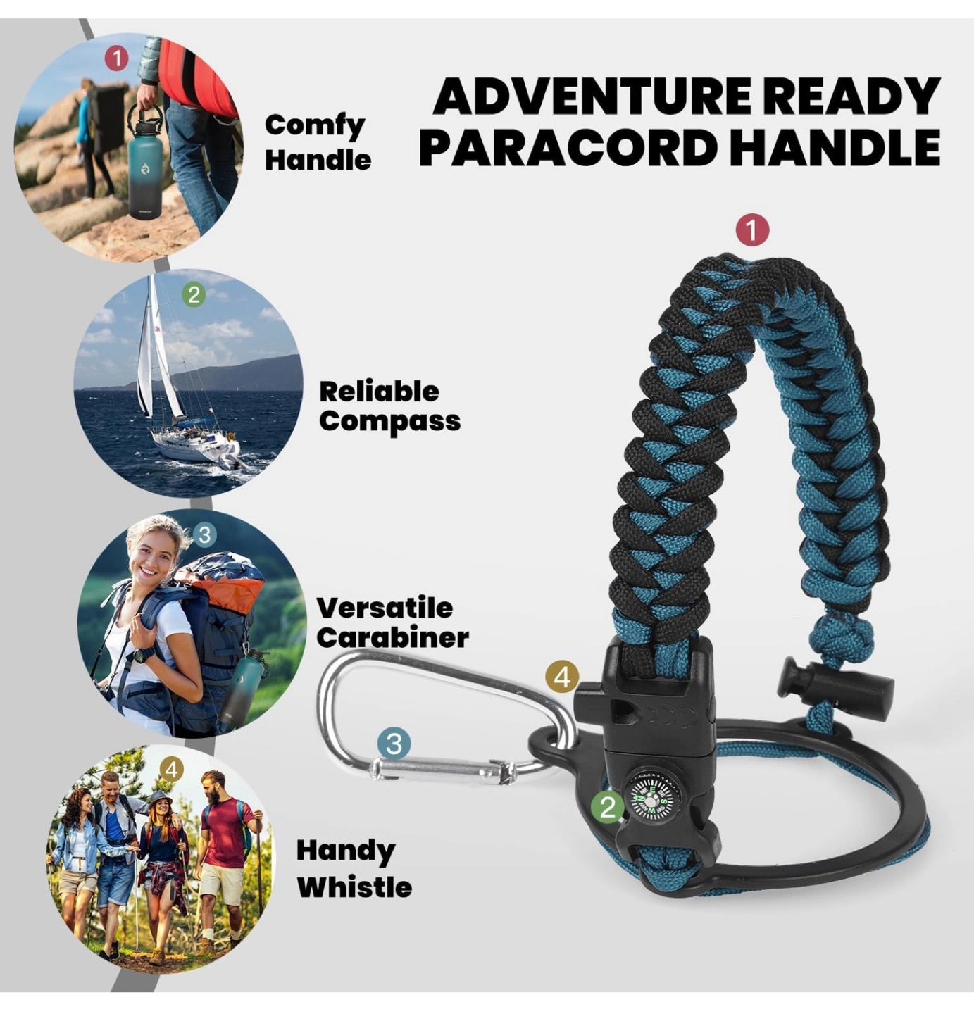 - Comes with a comfy paracord handle with a reliable compass, versatile carabiner and handy whistle
