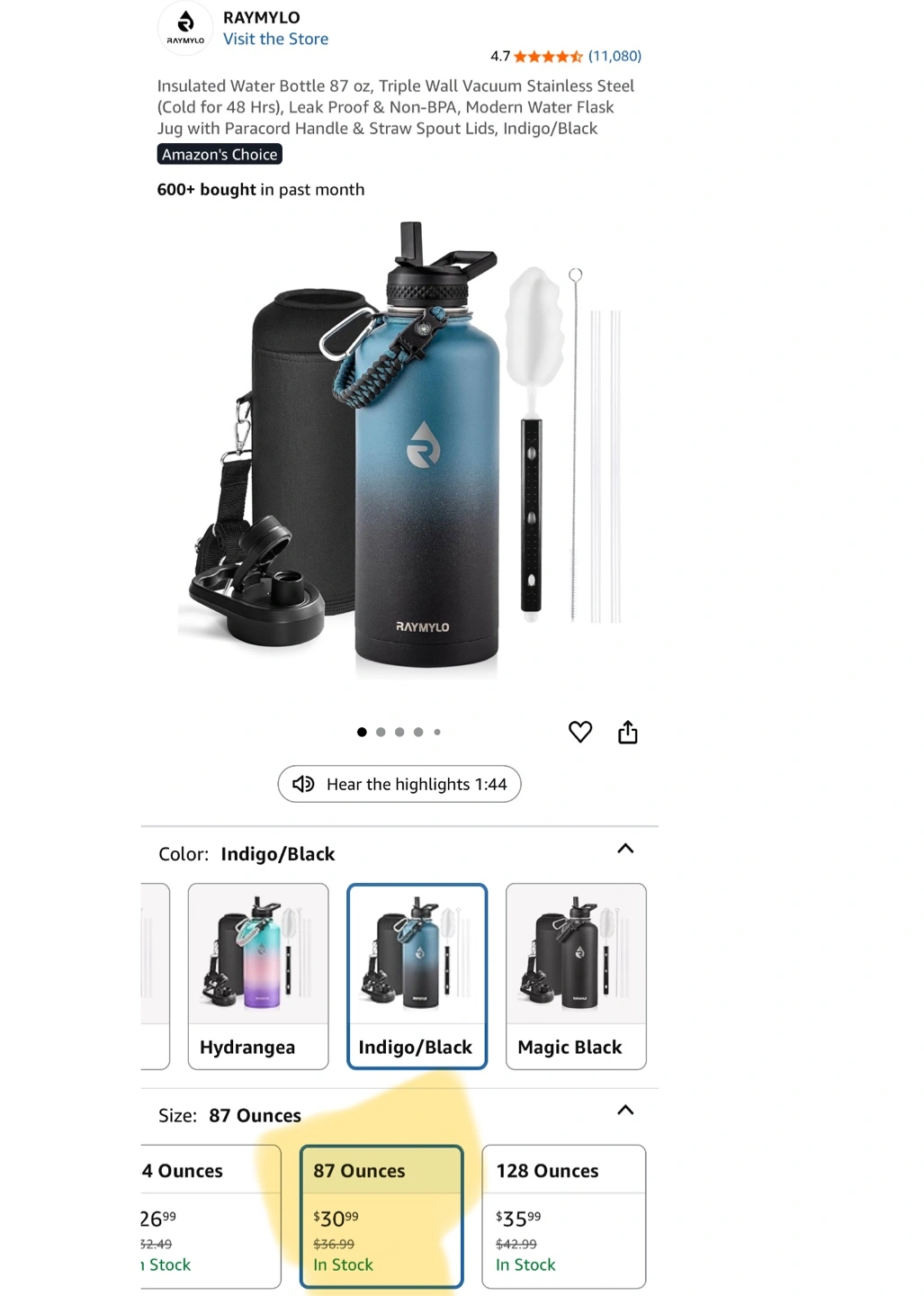 Keep your drinks cold or warm for hours with this RAYMYLO insulated water bottle! It features triple wall insulation to keep drinks cold for up to 48 hours or warm for up to 24 hours.