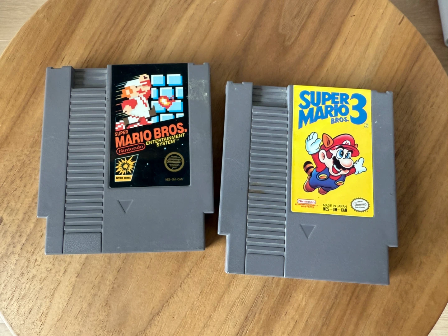 Selling two classic Nintendo Entertainment System (NES) games: Super Mario Bros and Super Mario Bros 3. Both games are in good used condition and ready for some retro gaming fun