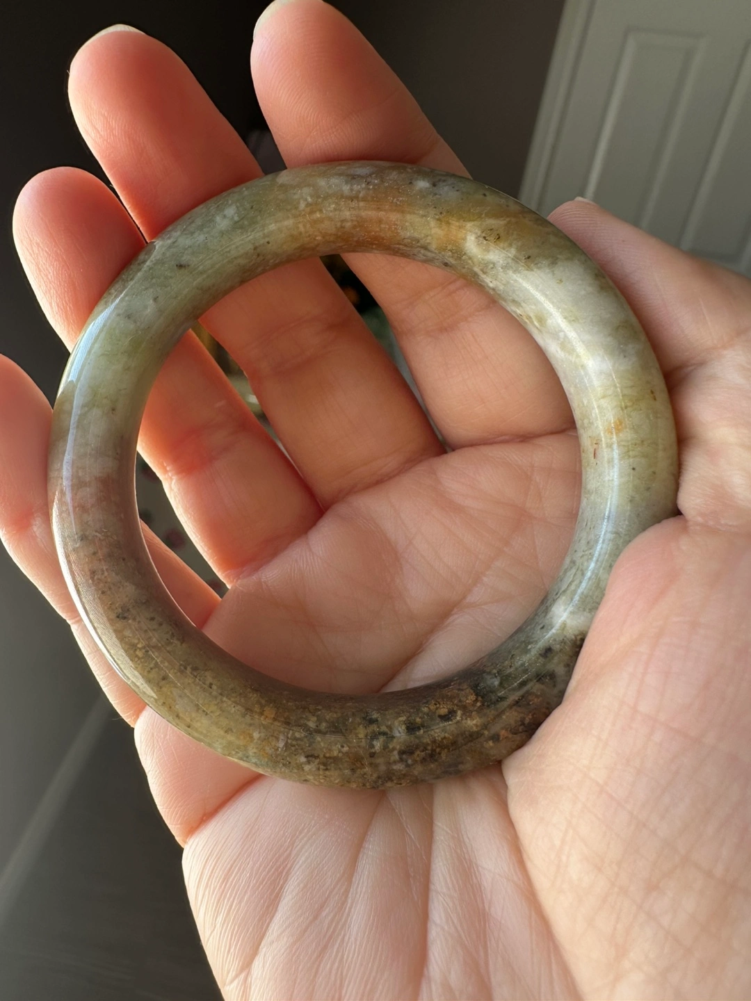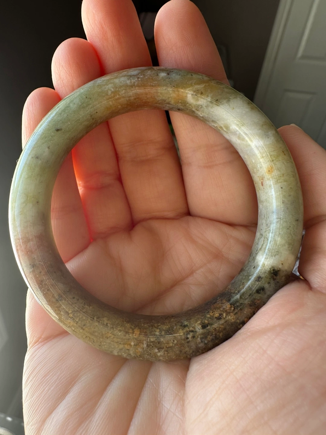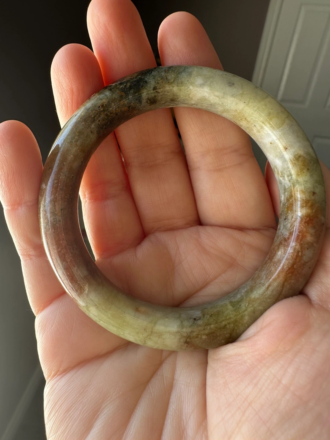 Selling bangle bracelet. It has a beautiful mix of green, brown, and white tones throughout. Perfect for adding a touch of elegance to any outfit!