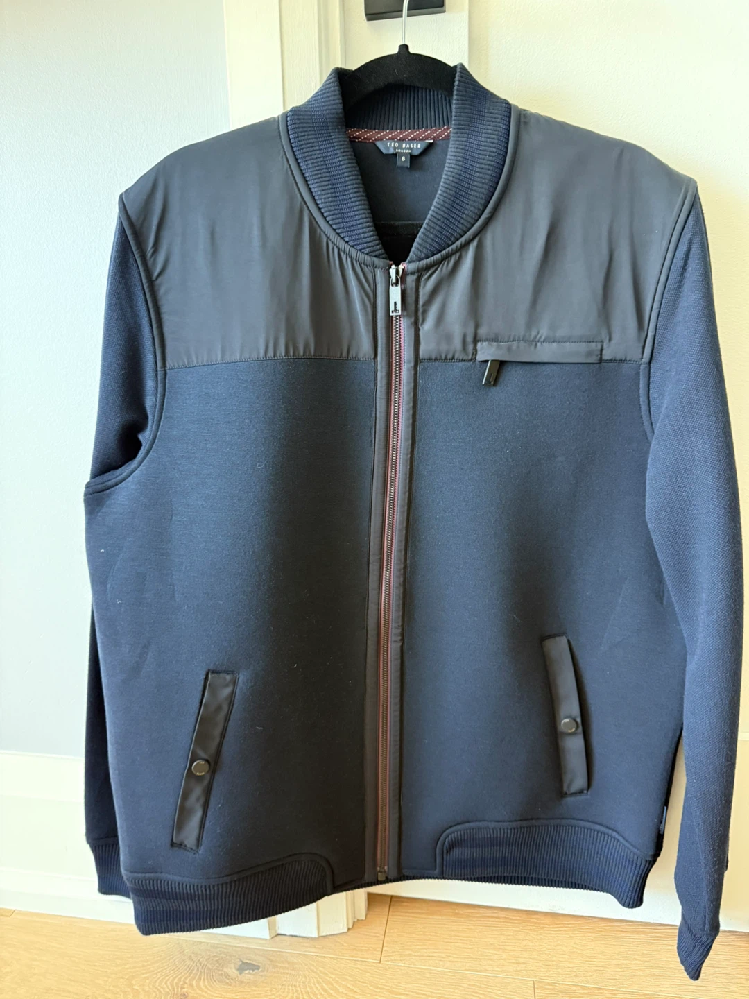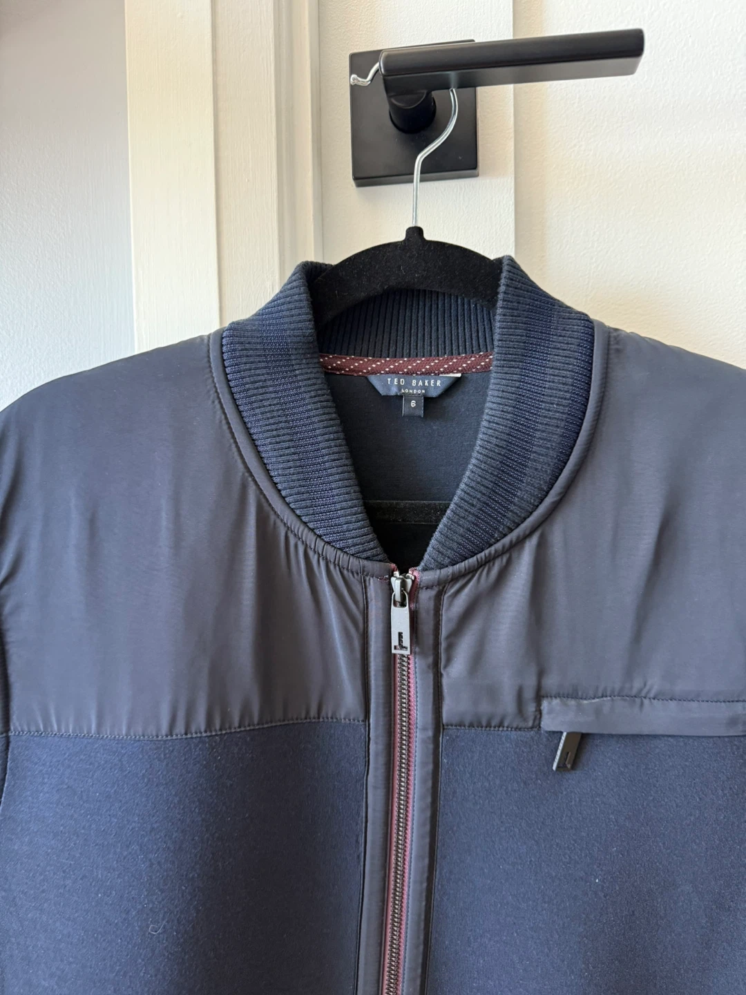 Here's a stylish Ted Baker jacket in size 6! It's in like new condition, never worn and ready for a new home. The jacket features a unique design with a combination of materials and textures, making it a versatile piece for your wardrobe