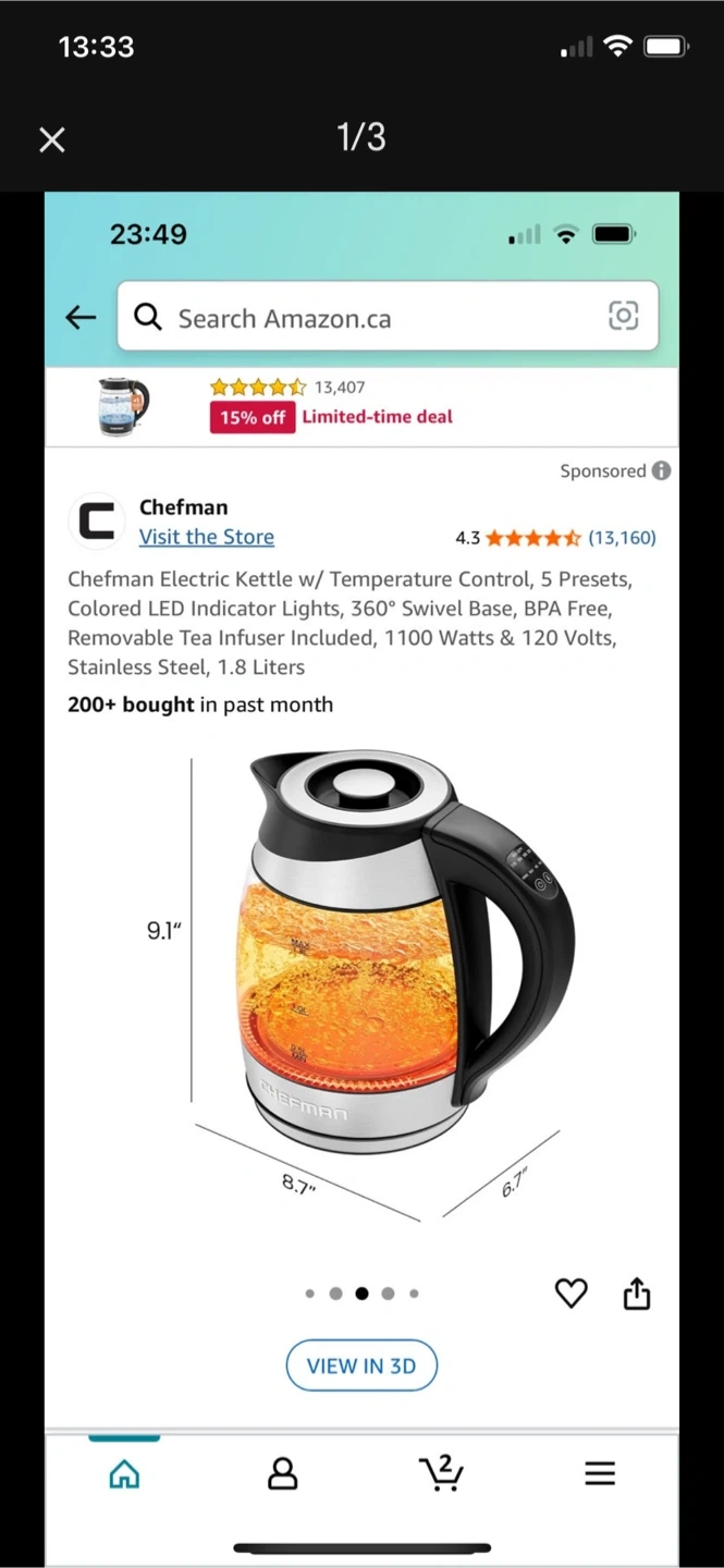 I'm selling a Chefman electric kettle with a tea infuser. It has temperature control and 5 presets. It also has colored LED indicator lights and a 360° swivel base. It's BPA free and made of stainless steel. It holds 1.8 liters