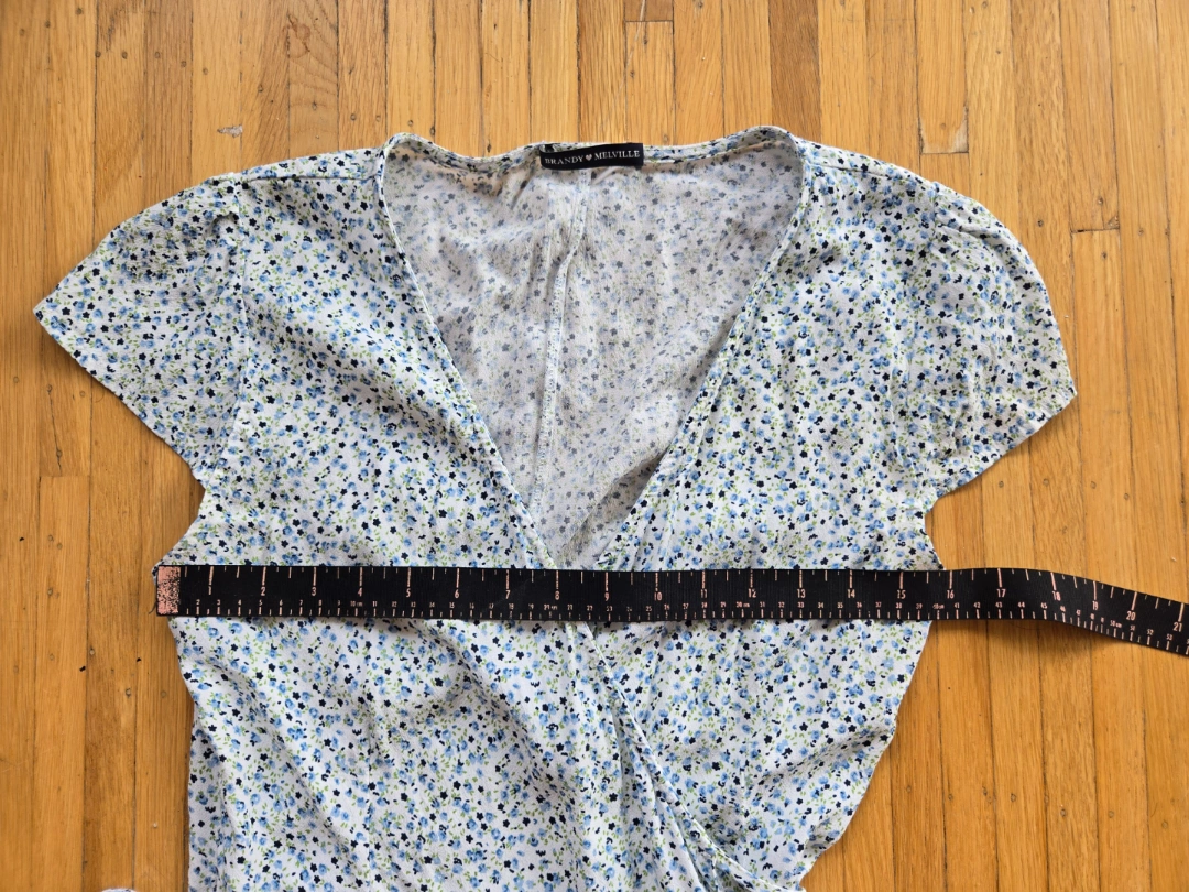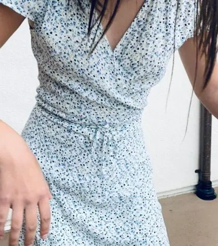 Super cute Brandy Melville wrap dress with a blue and green floral pattern! It's in great condition and perfect for spring or summer. The dress features a flattering v-neck and adjustable wrap tie, so you can customize the fit. Lightweight and comfy! Mid length. One size.
