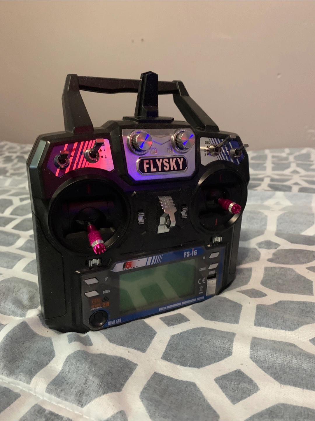 Selling a Flysky FS-i6 remote controller with various accessories. Great for RC enthusiasts or anyone looking to get into the hobby! Includes batteries, propellers, and other components as seen in the photos.