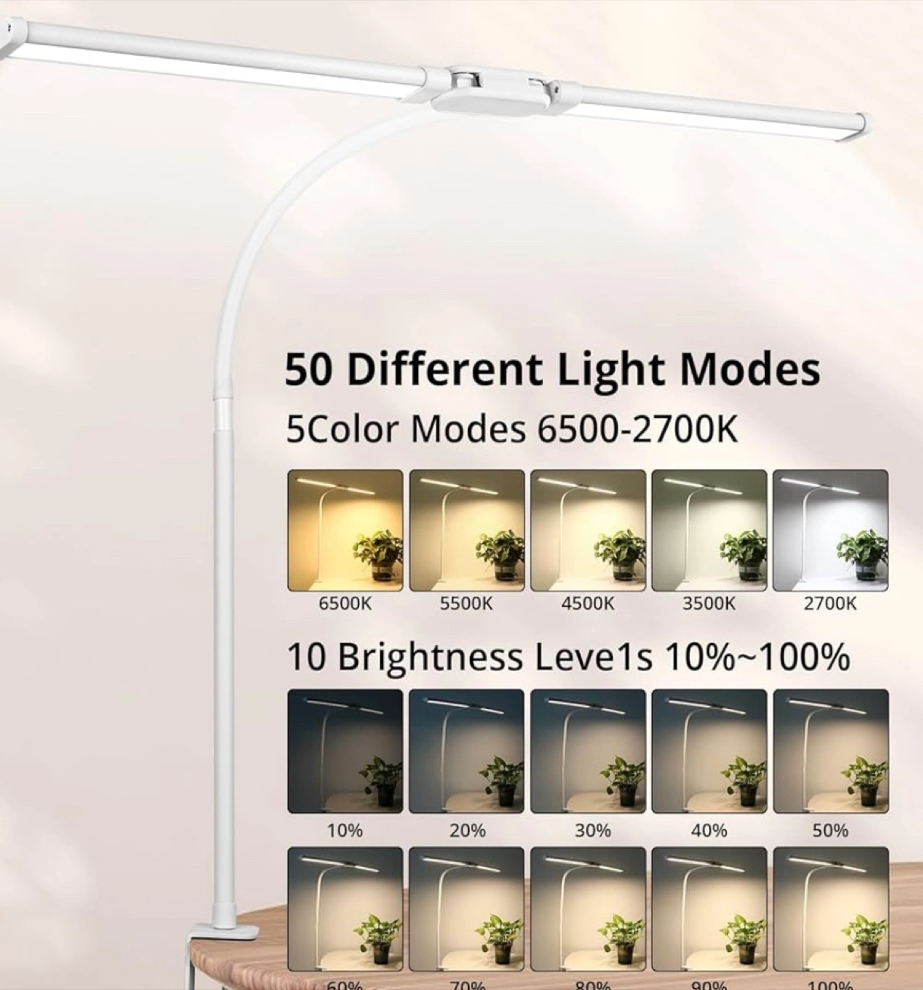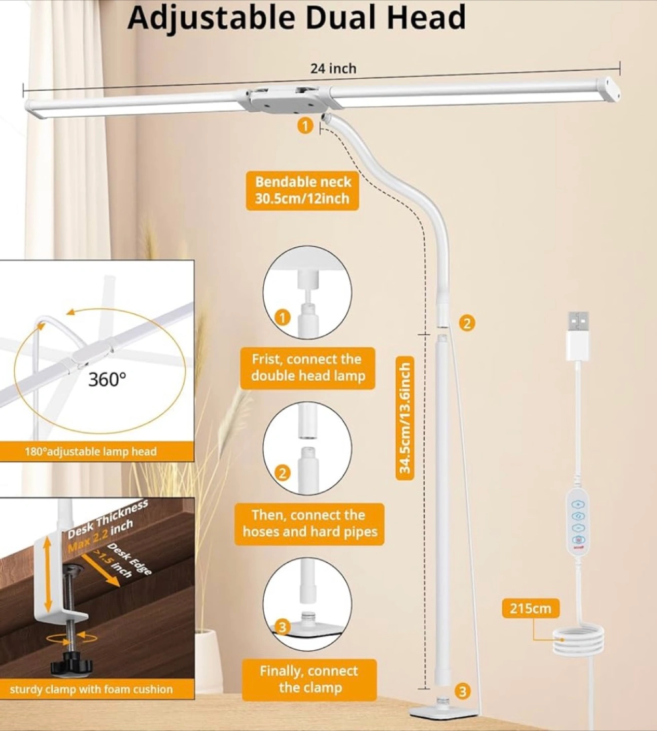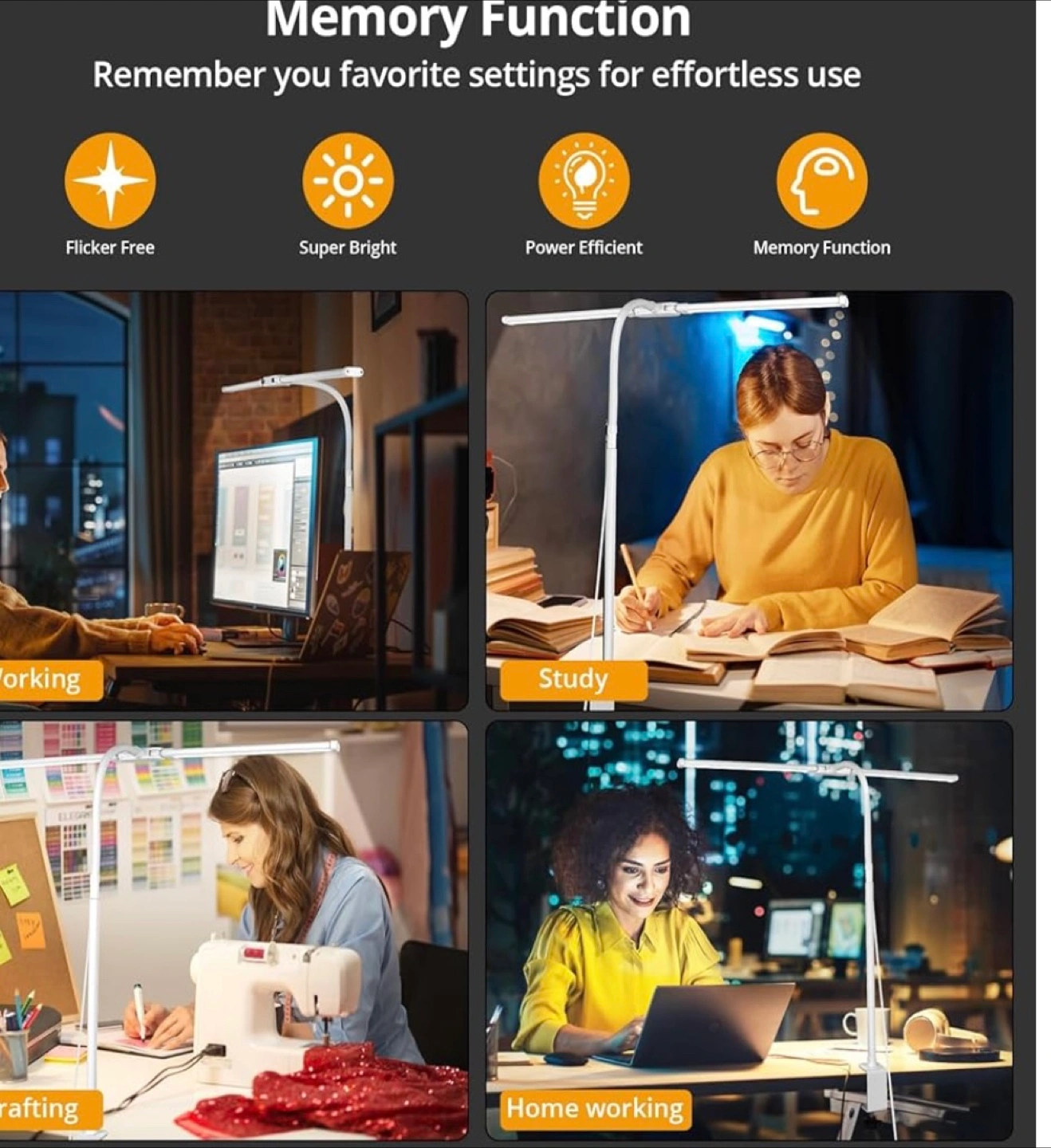Hi all! This adjustable dual head LED desk lamp is perfect for working, studying, crafting, or home working.