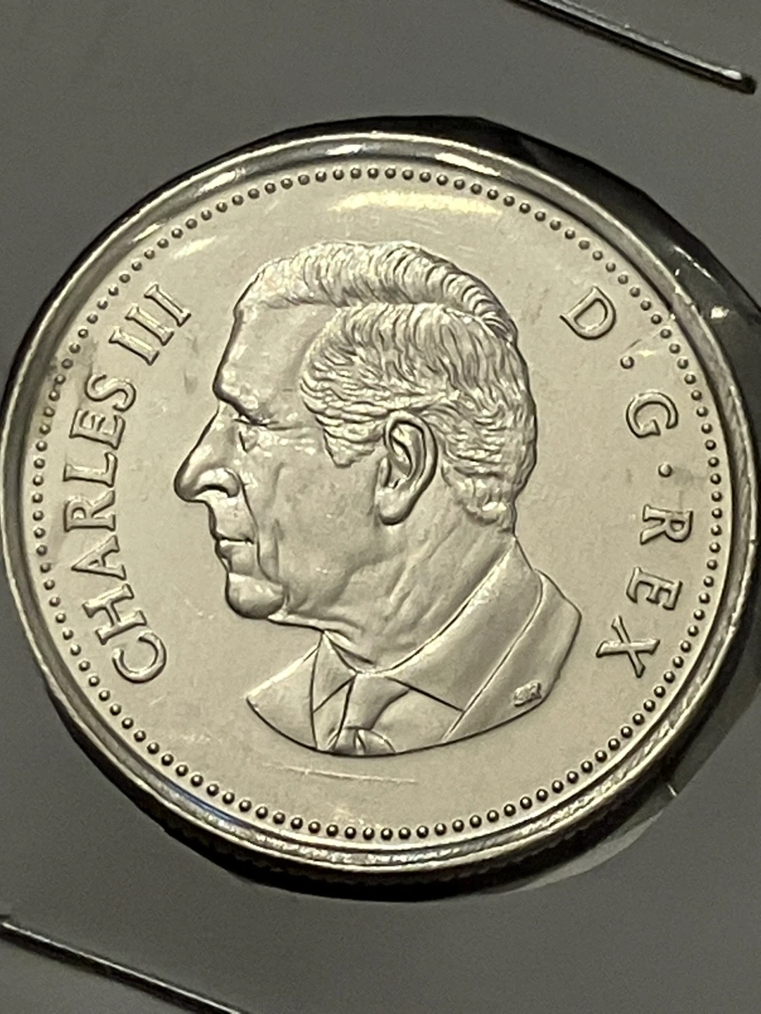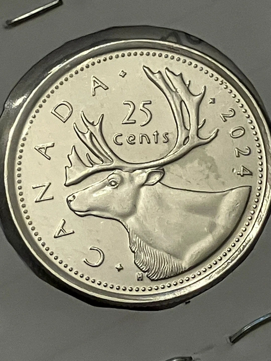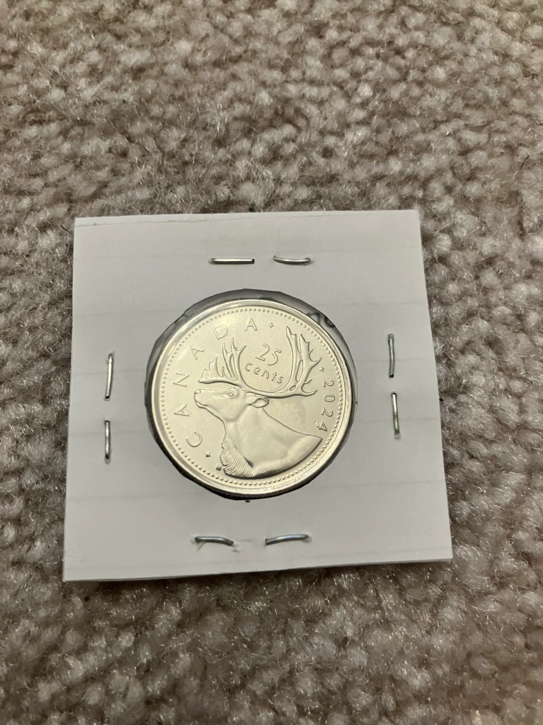 Selling a 2024 Canadian quarter. It features a caribou on one side and King Charles III on the other. Coin is in a Choice Uncirculated MS-63 state