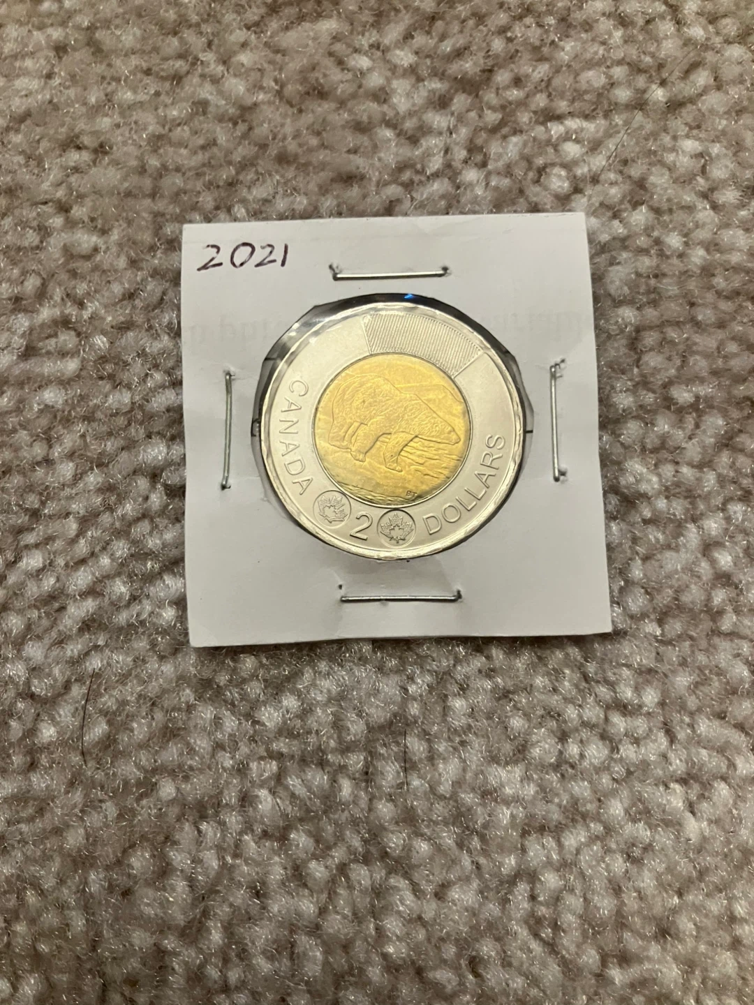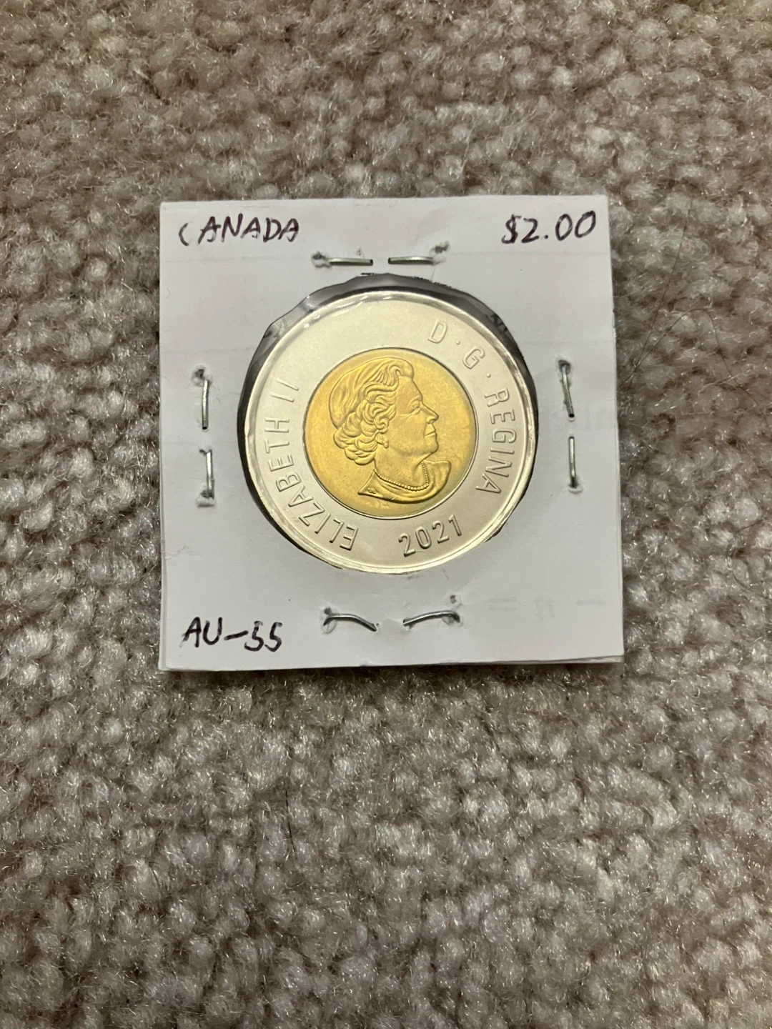 Selling a 2021 Canadian Toonie. It's in great condition, graded AU-55 on the Sheldon Grading System