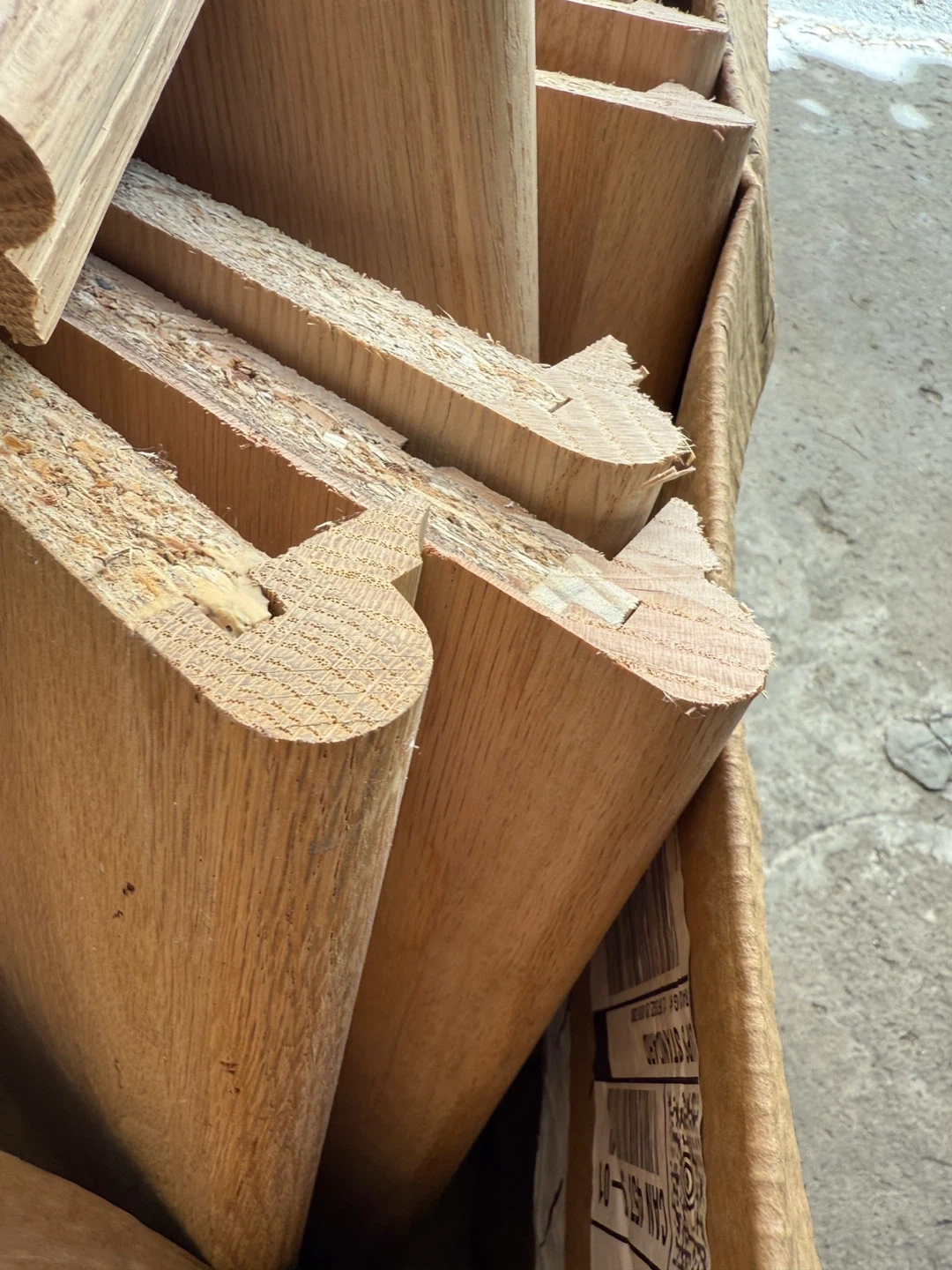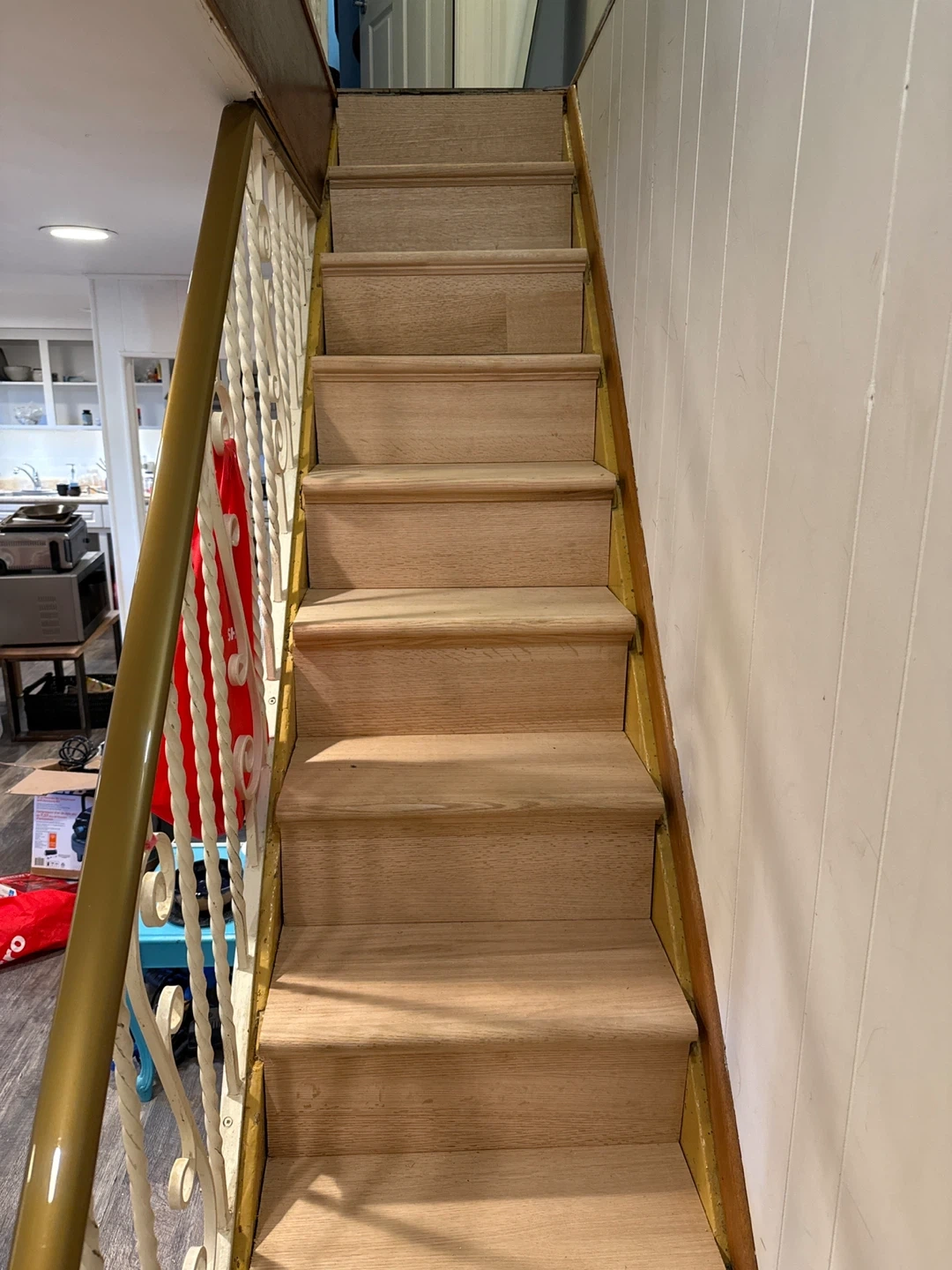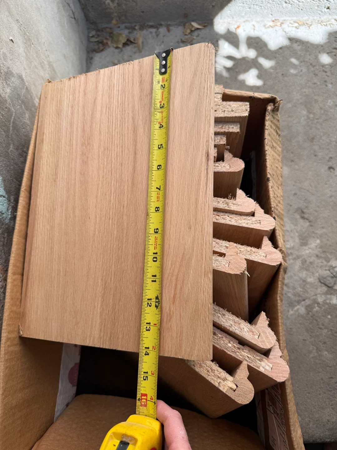 Giving away off cuts from a stair redo. They have solid wood bull noses. You can cover a smaller 1-2 stairs by marrying them together at the back with staples and glue, or you could add a little built in bookshelf to your home. Give them a life other than the scrap heap! Risers (7) are also available.