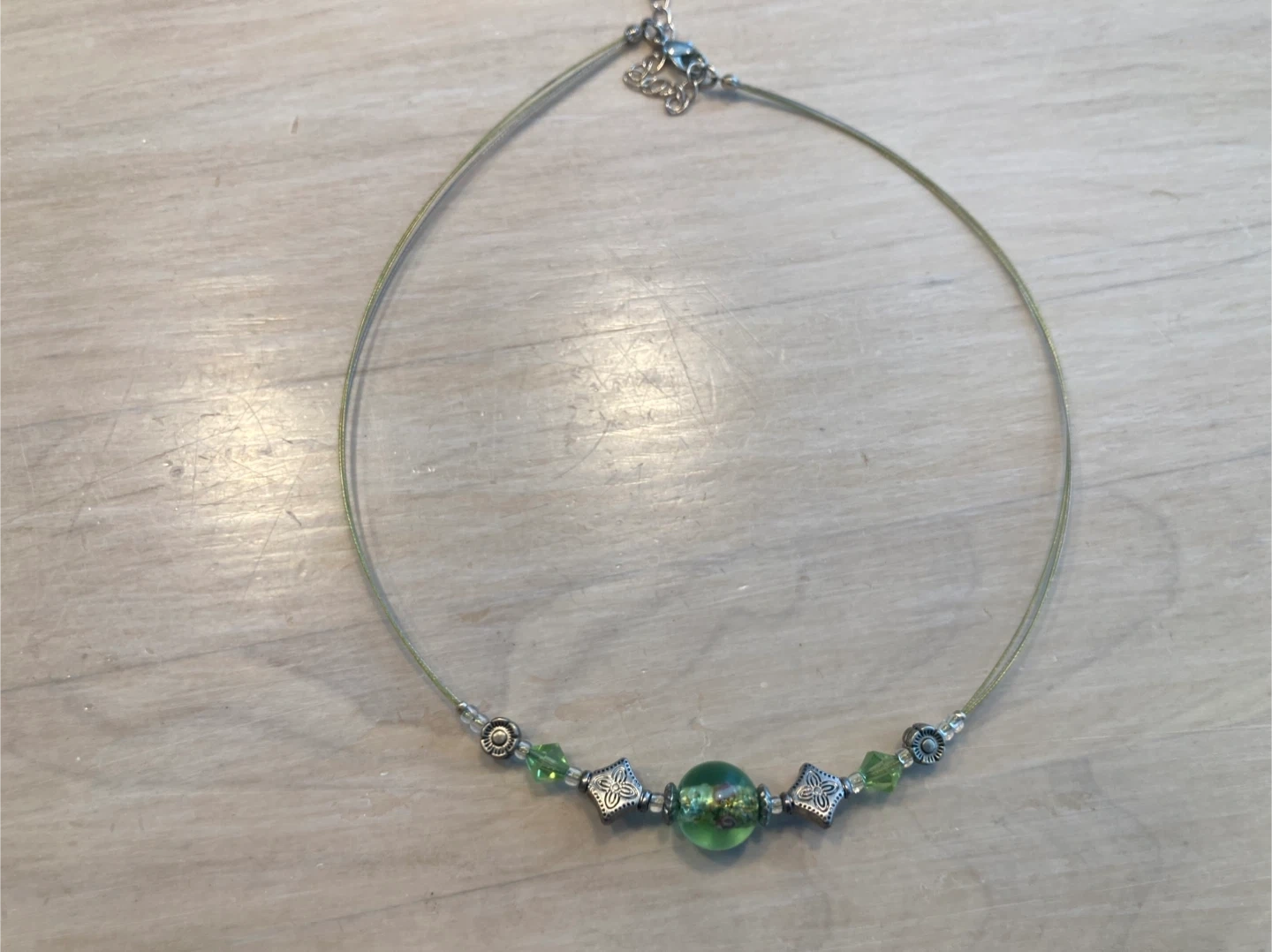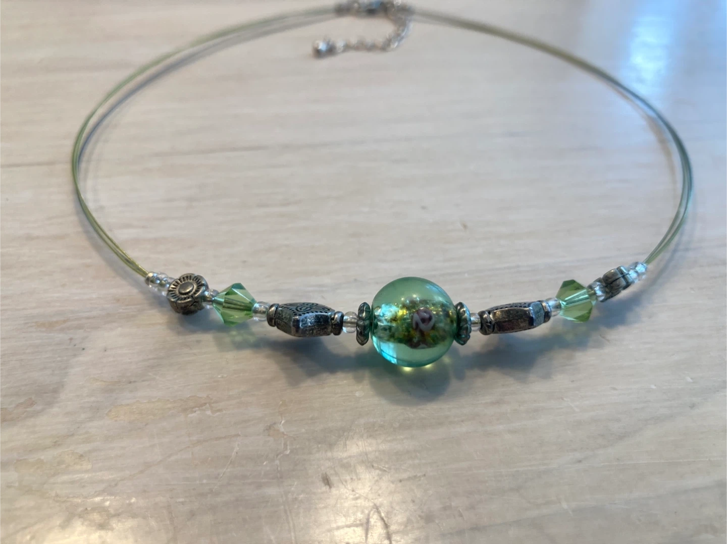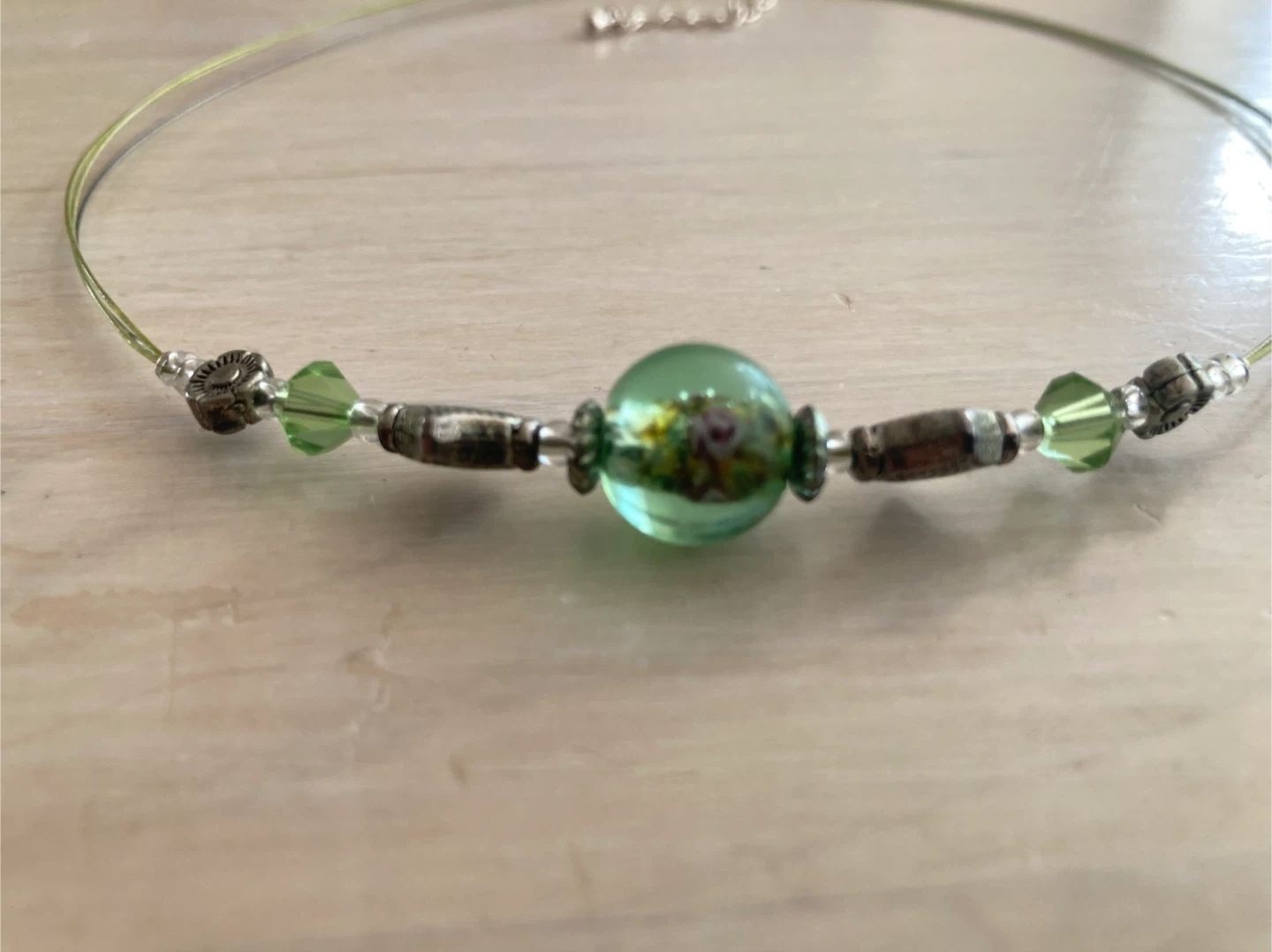 this brand new in bag choker has interesting and lovely beads on it. the clasp is secure and reliable.