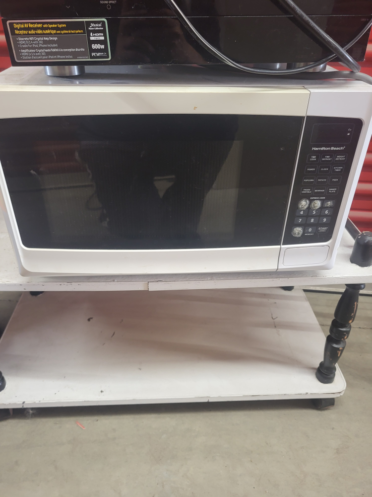 Selling a Hamilton Beach microwave in good working condition. It has several preset buttons for common foods like popcorn, potato, and pizza. A great addition to any kitchen!