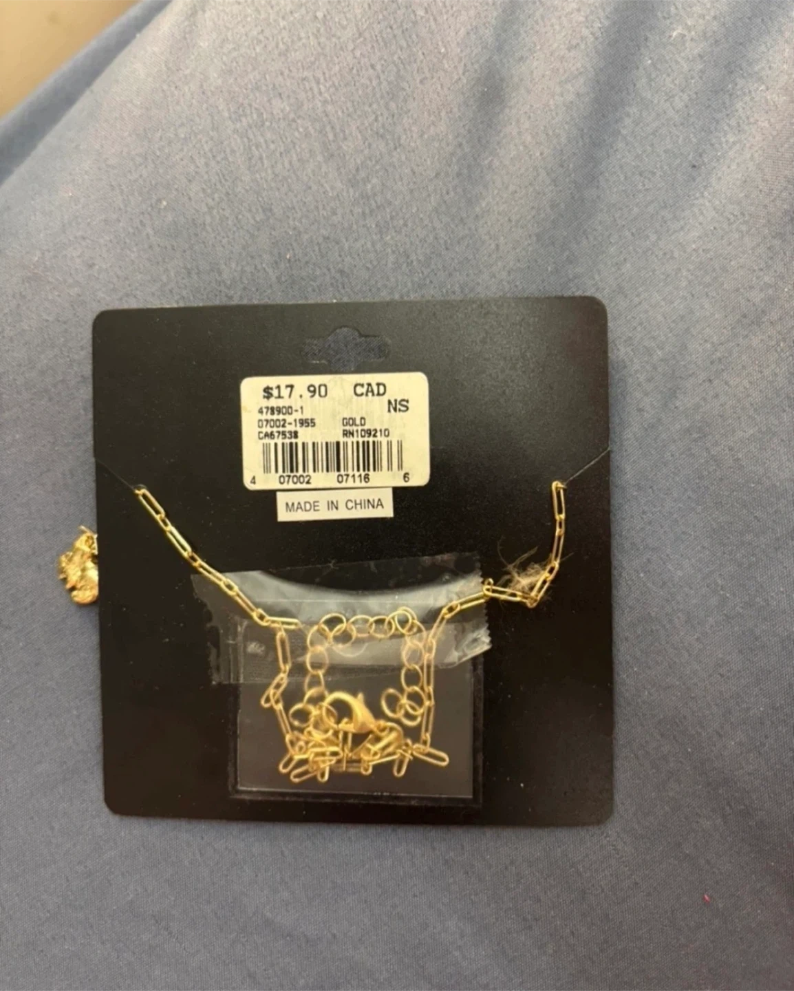 A gold-toned necklace from Windsor featuring a variety of charms including a cross, heart, butterfly, flower, and bow. It has a lobster clasp closure. This necklace adds a delicate touch to any outfit!