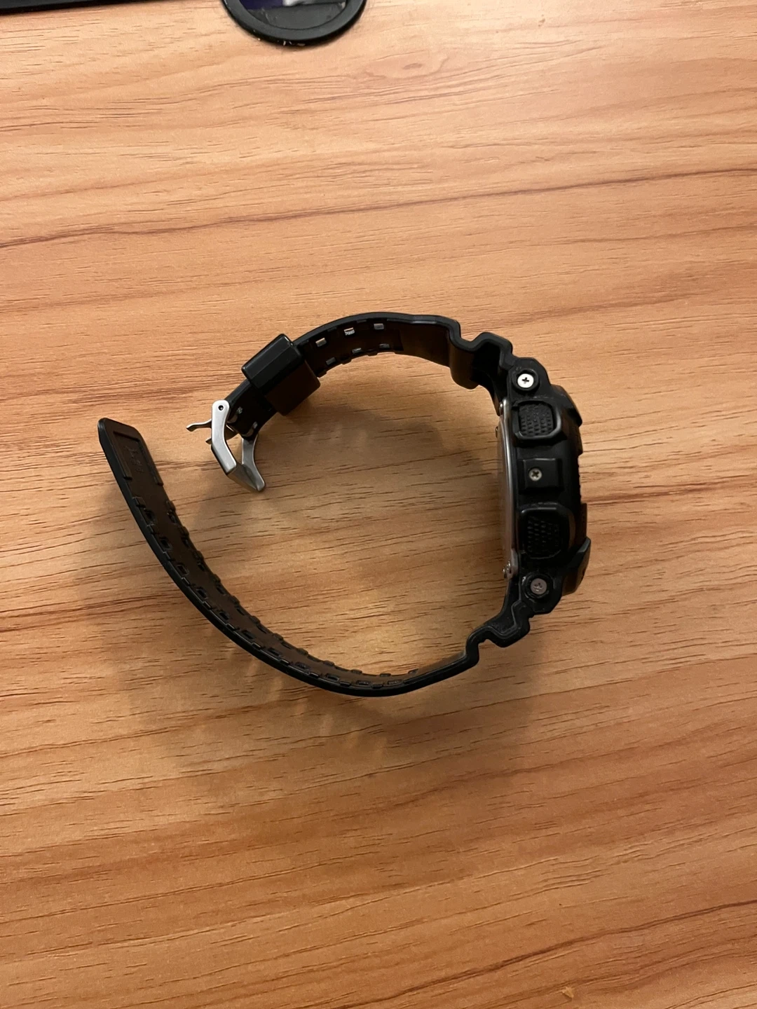 Black Casio G-Shock GA-100 men's analog-digital watch. Water resistant to 200m with shock and magnetic resistance. Black resin band and case.