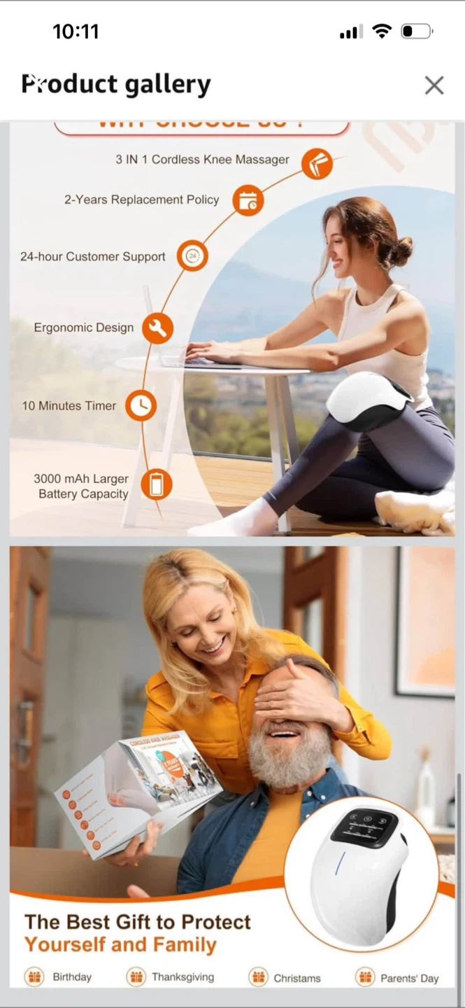 This 3-in-1 cordless knee massager offers adjustable heat and vibration modes. It features a 10-minute timer and a 3000 mAh battery for extended use. It's great for relief from knee pain and stiffness after sports or during travel.