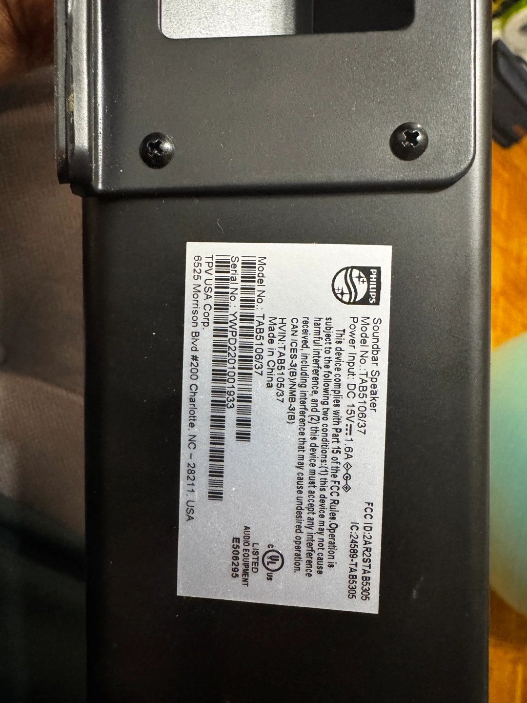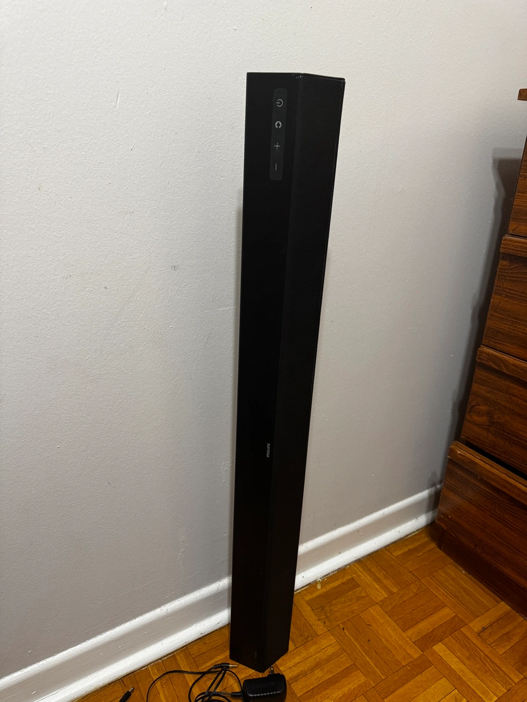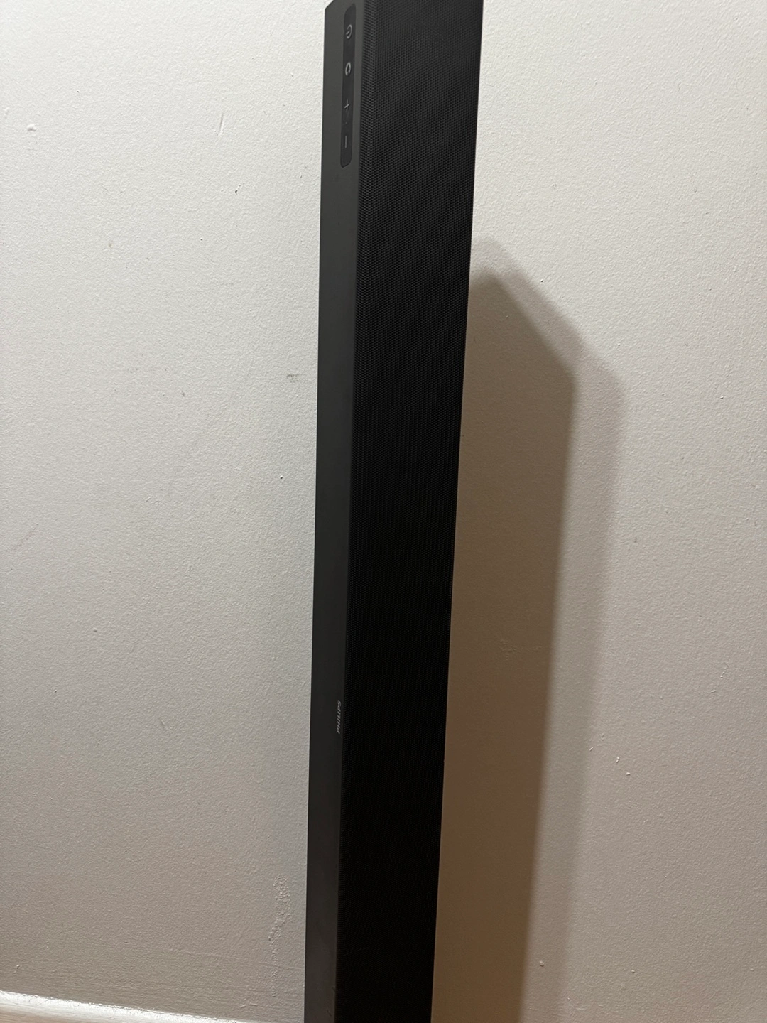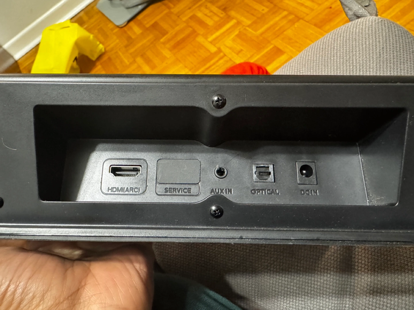Includes power cord. Multiple inputs: HDMI ARC, Aux in, Optical, and DC in. Good condition.