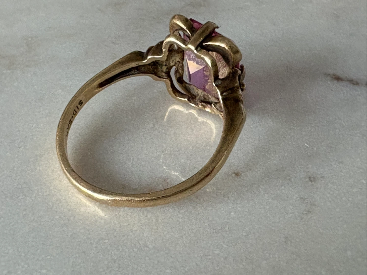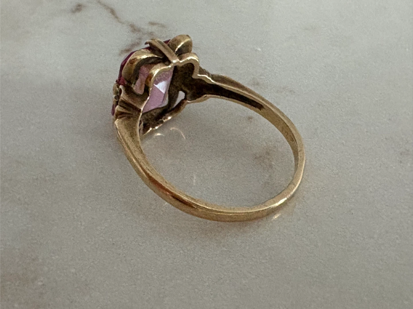 Vintage 70s SID-BAR 10k Gold Synthetic Pink Spinel Ring