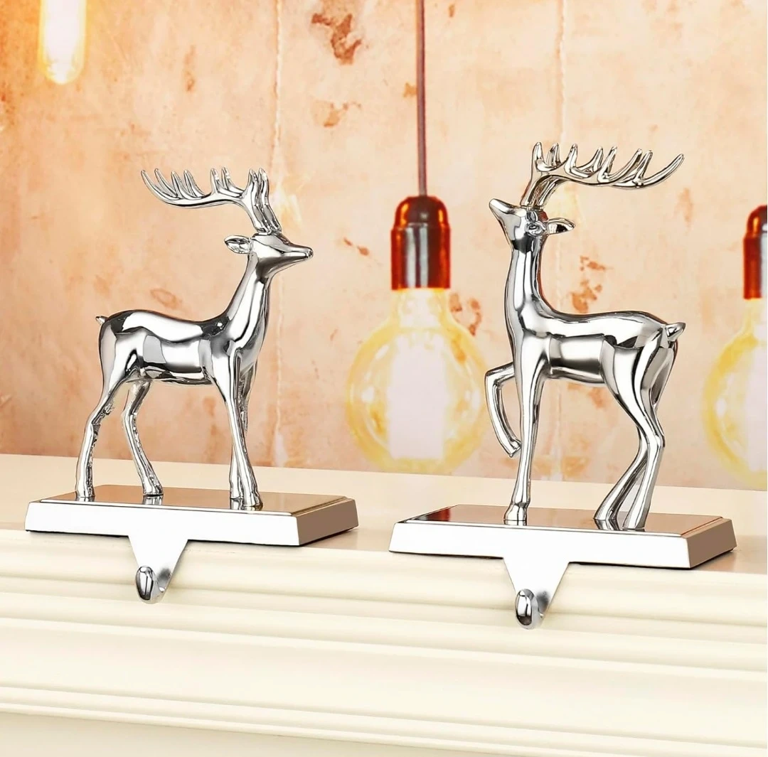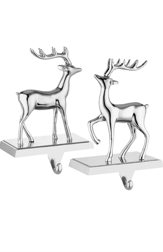 2 Silver Reindeer Stocking Hangers