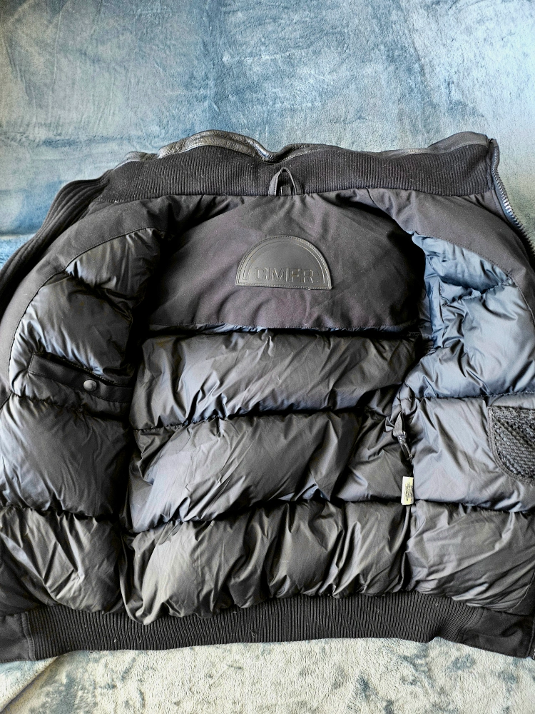 π¨π¦ CMFR Men's Black Down Bomber Jacket with Leather Trim