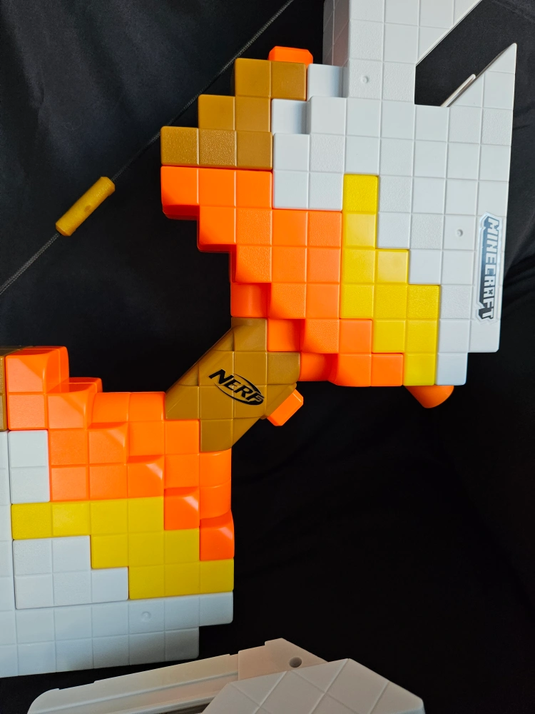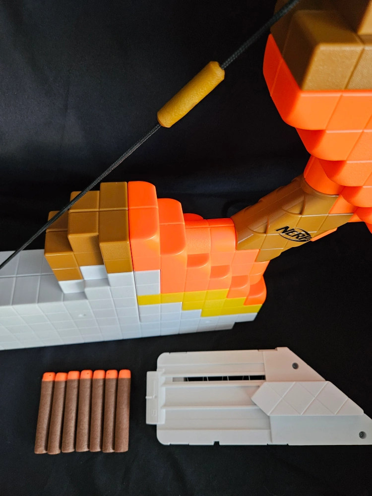 The price includes a Nerf Minecraft Sabrewing Motorized Blaster Bow in excellent condition, dart clip and 7 darts. Batteries are included but they will need to be replaced soon.