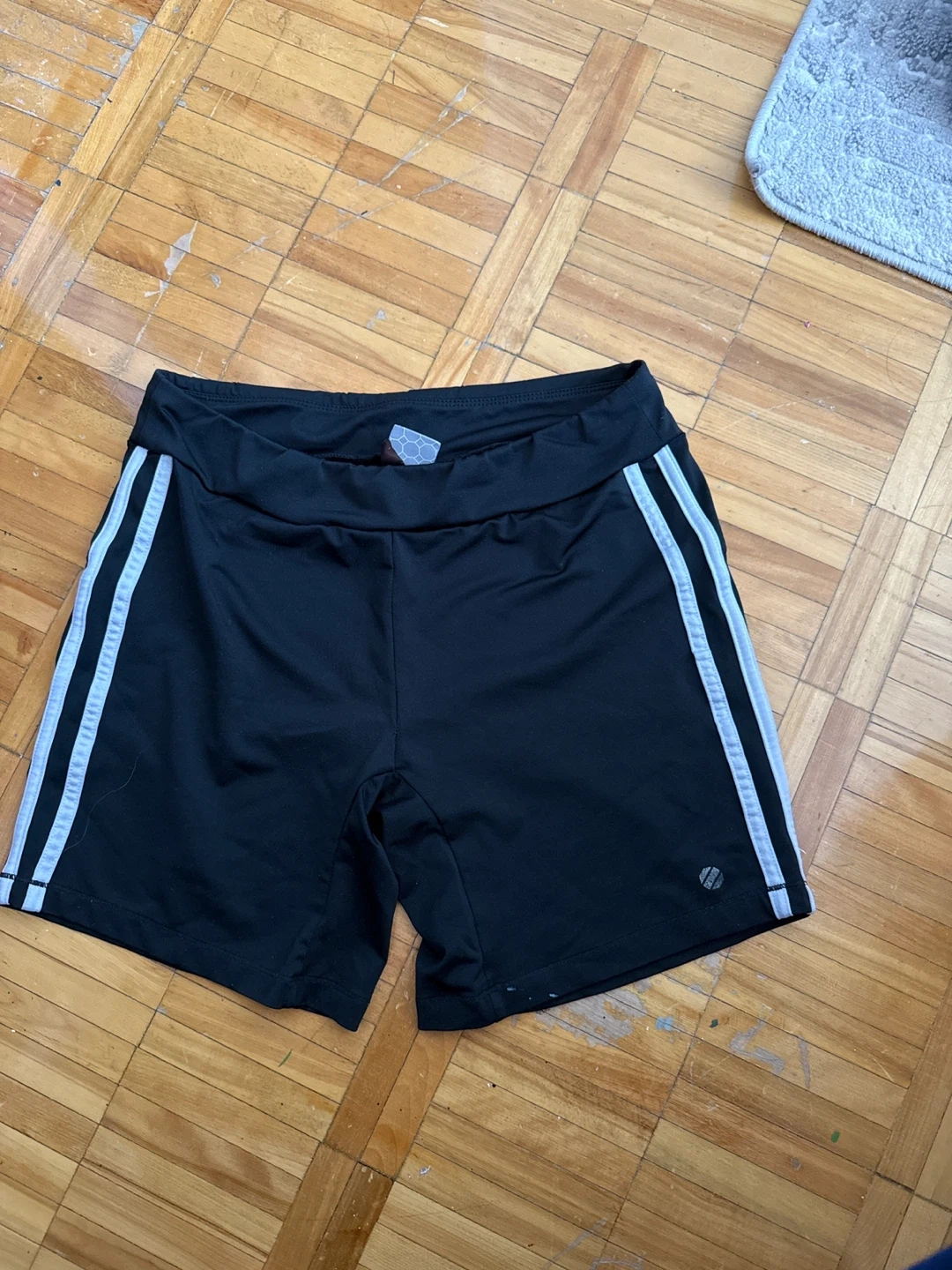 Selling a pair of Danskin Now athletic shorts in black. They feature white stripes down the sides. Perfect for workouts or casual wear!
