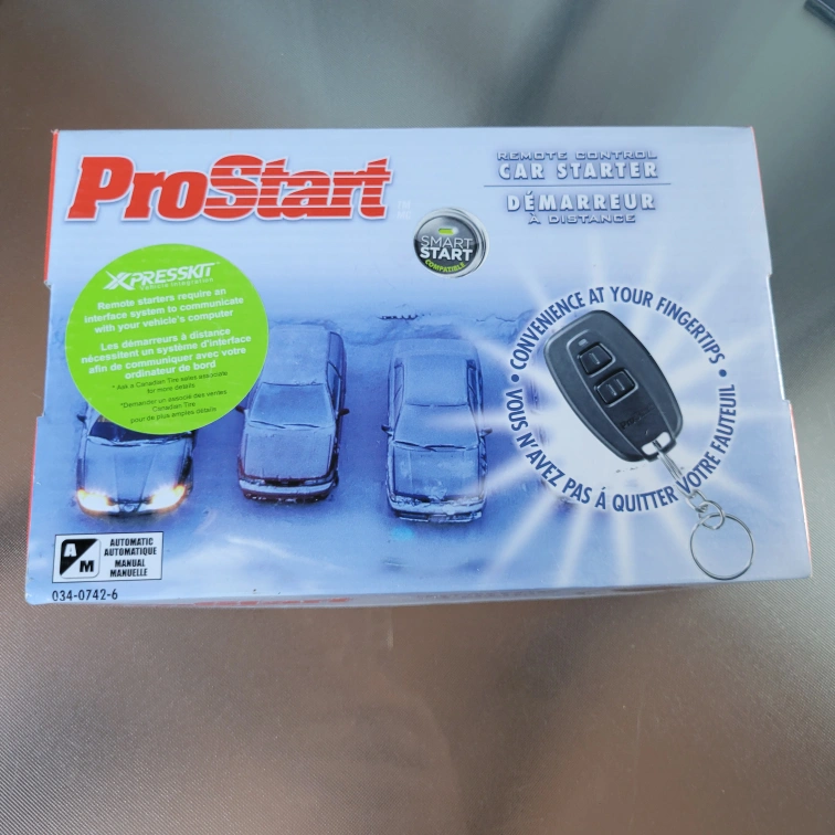 Selling a brand new ProStart remote car starter, still in its original box! This includes a 2-button remote control transmitter. The buttons can be configured for toggle lock/unlock and start/stop. It has a remote range of up to 950 ft (290 m) and a programmable automatic shut-off. Perfect for those cold Canadian mornings!