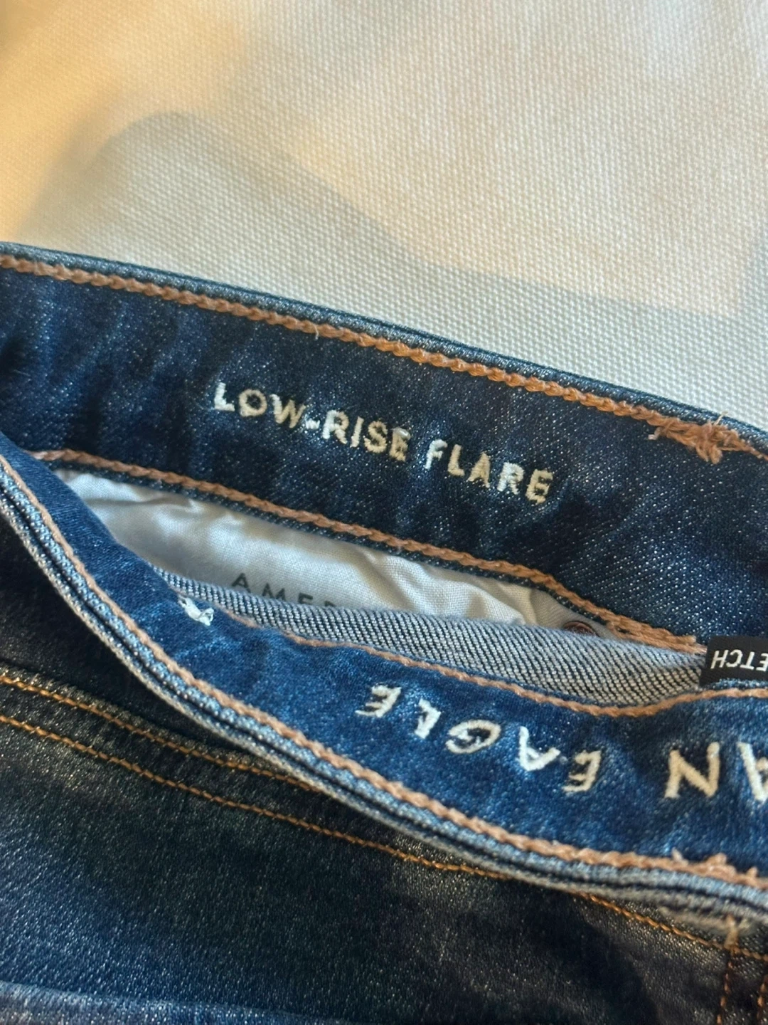 Selling a pair of American Eagle low-rise flare jeans in size 4. Never worn, super flattering flare jeans