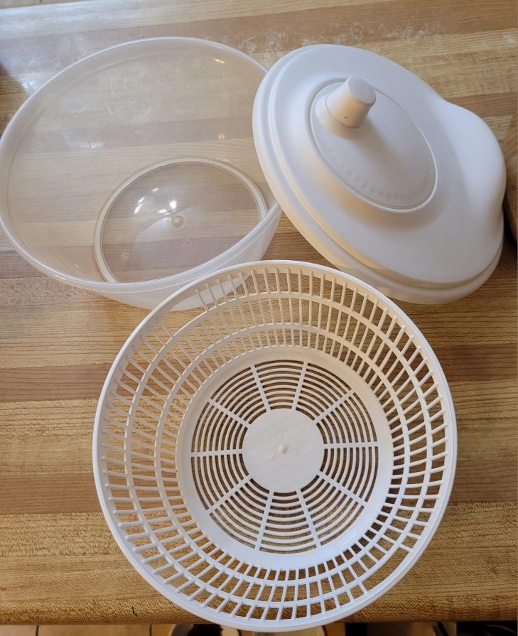 I'm selling a salad spinner! It's in great shape and ready to help you make the freshest salads. It's white and includes all the components you need to get spinning