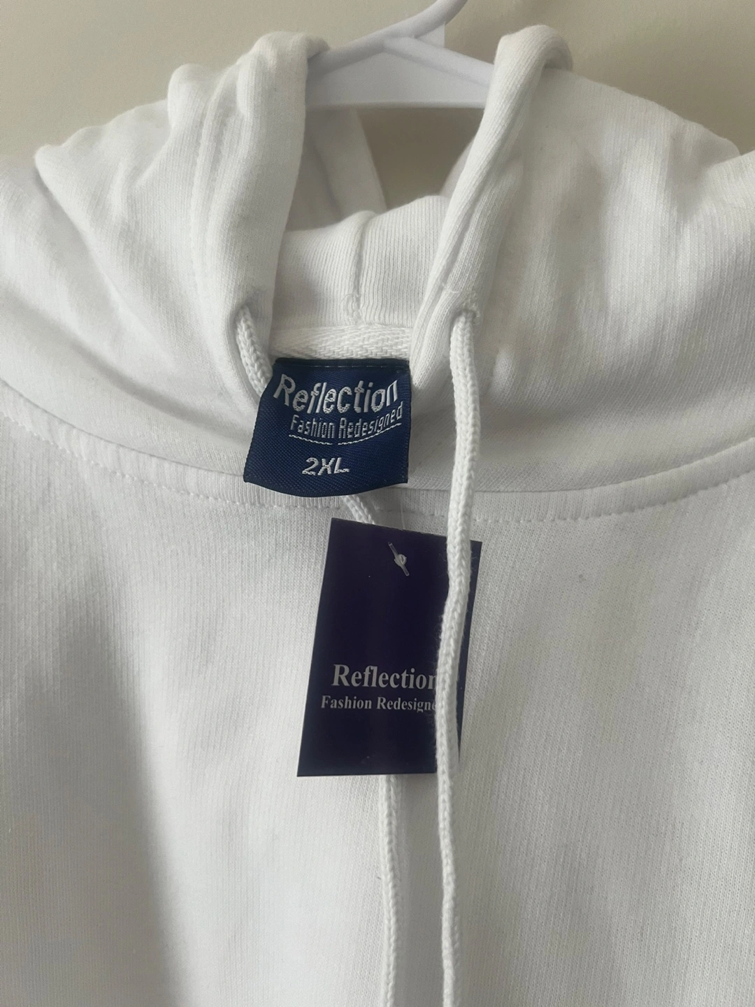 Brand new Reflection Fashion Redesigned hoodie! It's white and a size 2XL. Never worn, still has the tags on it.