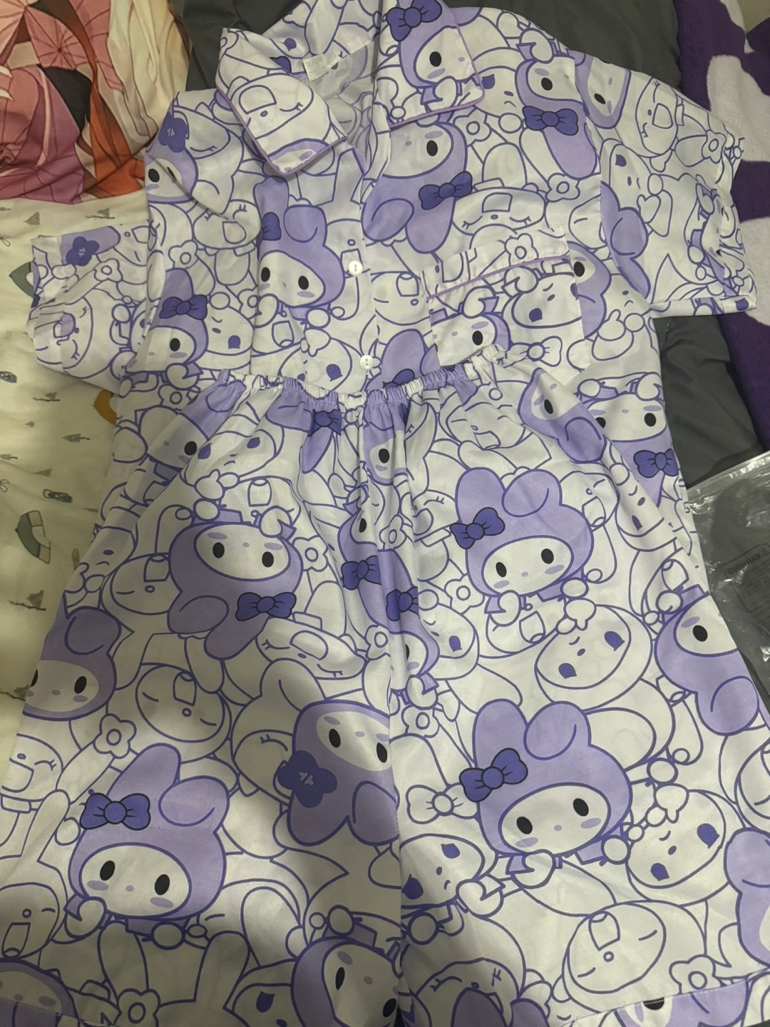 65Super cute My Melody pajama set! It's a short sleeve shirt and shorts set with an all-over print of My Melody. Perfect for lounging around the house or a comfy night's sleep. I never used it. RFS: Bought the wrong size