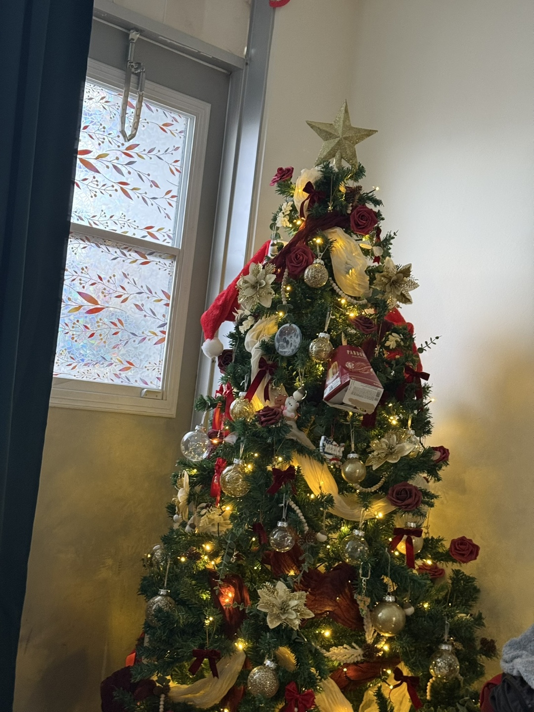 Selling a beautiful Christmas tree, has a lot of decorations and lights. It's perfect for adding some holiday cheer to your home 6ft