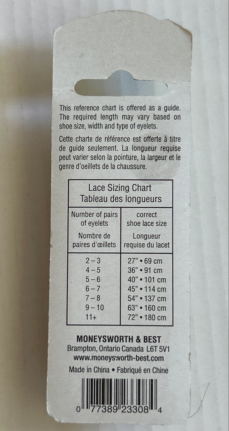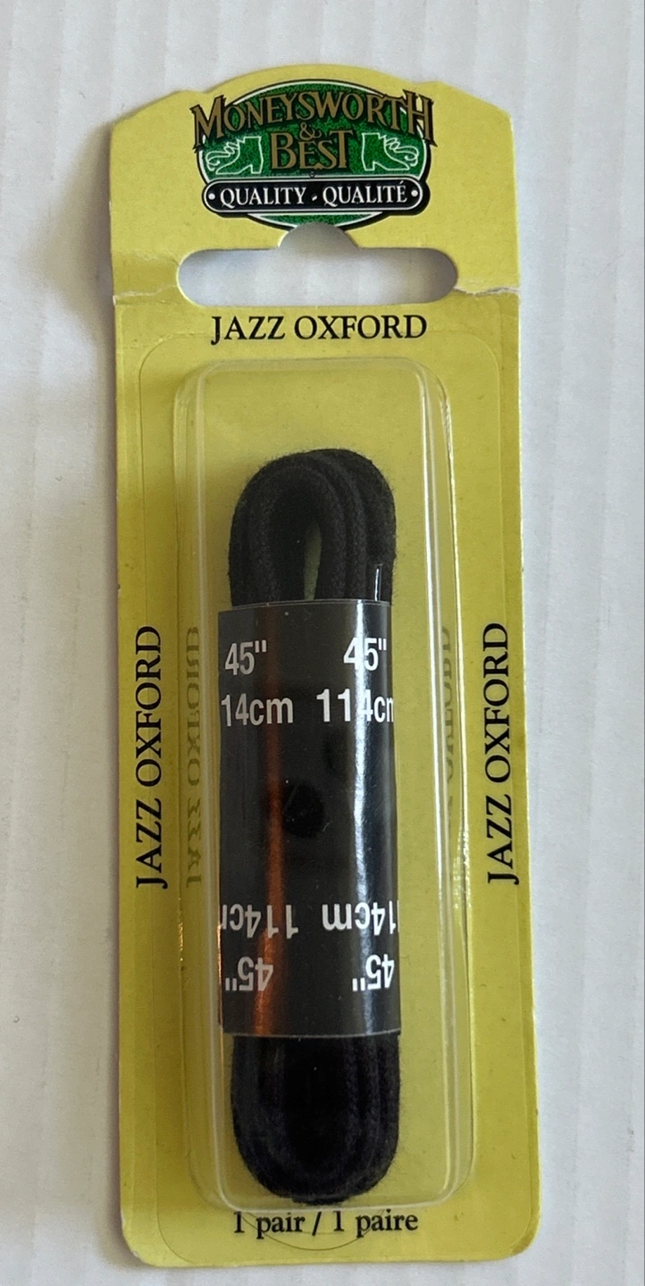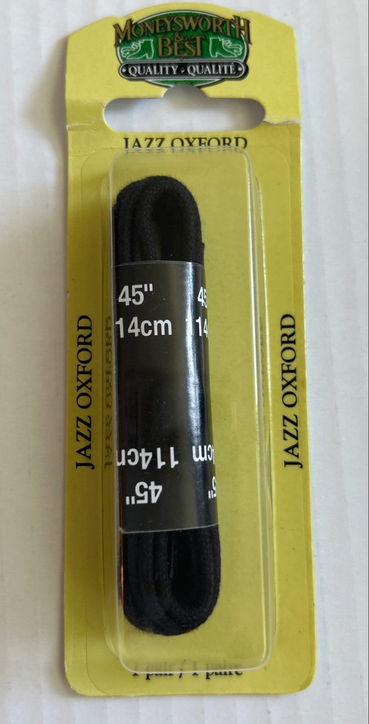 I'm selling a new pair of Moneysworth & Best Jazz Oxford shoelaces! They are black and 45 inches long (114 cm). Perfect for replacing your old laces or just having an extra pair on hand. Cash & pick up only