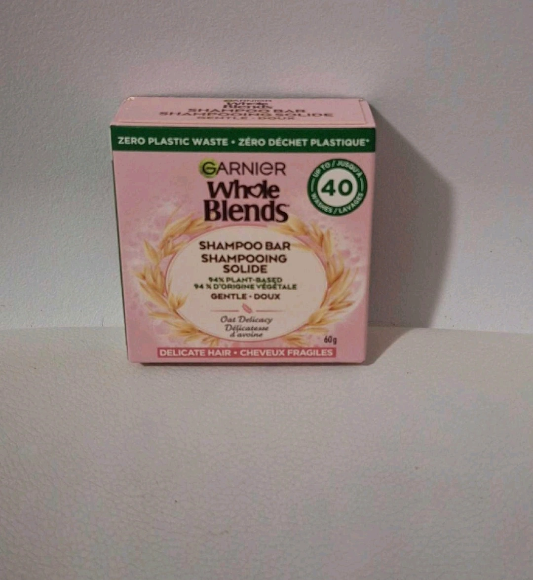 I'm selling a Garnier Whole Blends shampoo bar for delicate hair! This shampoo bar is 94% plant-based and gentle on your hair. It's the Oat Delicacy variety and comes in a 60g size. Plus, it comes in zero plastic waste packaging!